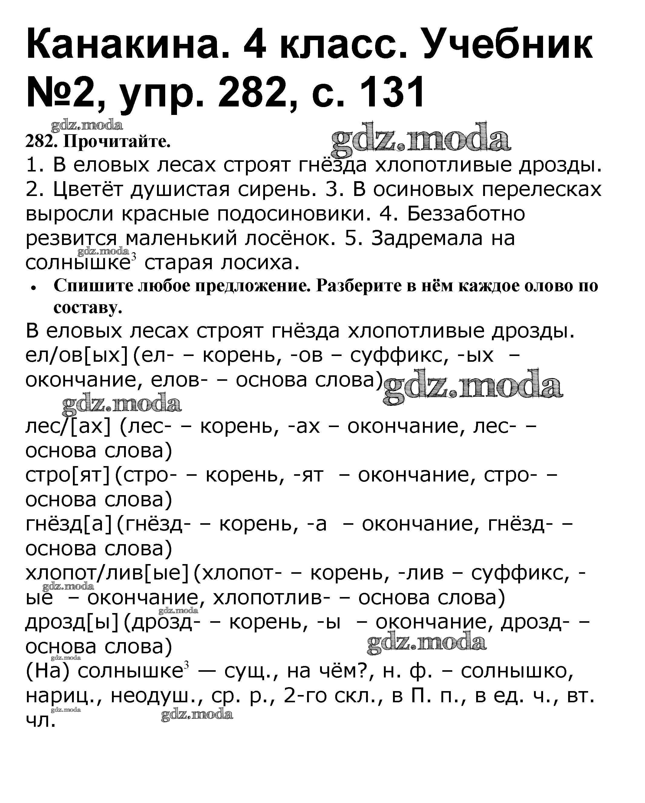 ОТВЕТ на задание № 282 Учебник по Русскому языку 4 класс Канакина Школа России
