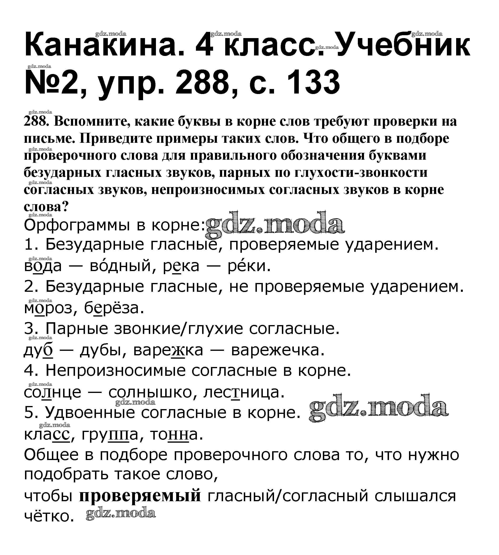 ОТВЕТ на задание № 288 Учебник по Русскому языку 4 класс Канакина Школа России