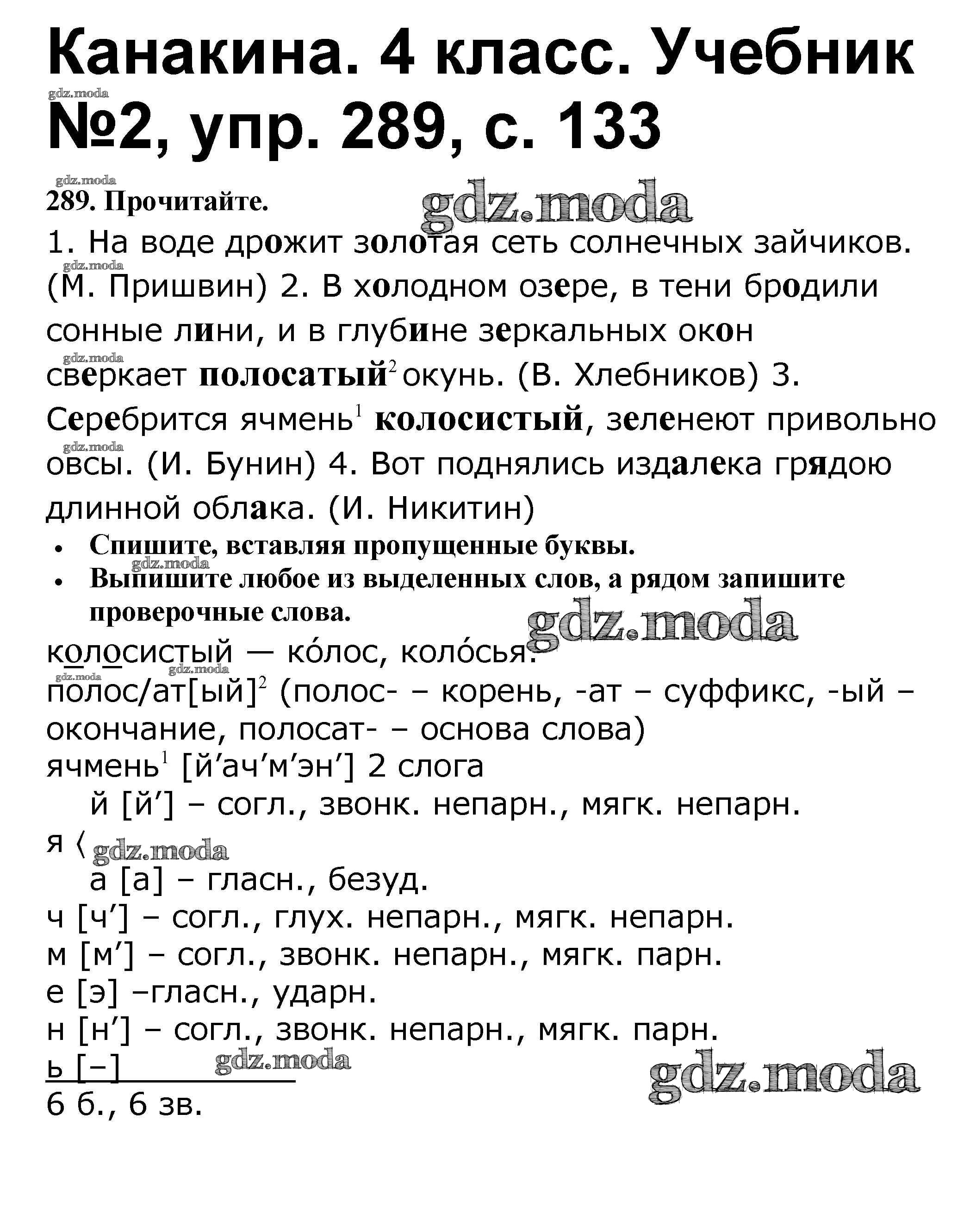 ОТВЕТ на задание № 289 Учебник по Русскому языку 4 класс Канакина Школа России
