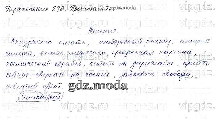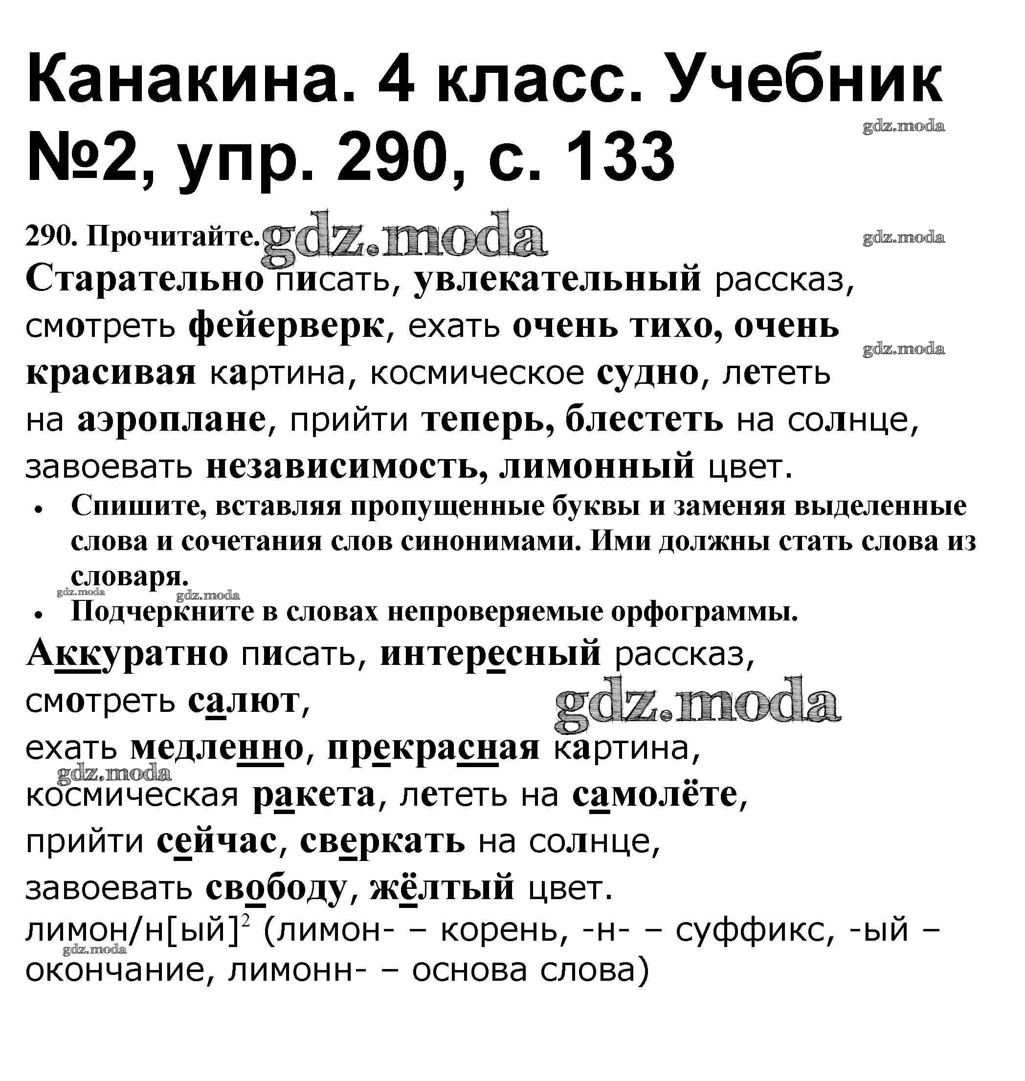 ОТВЕТ на задание № 290 Учебник по Русскому языку 4 класс Канакина Школа России