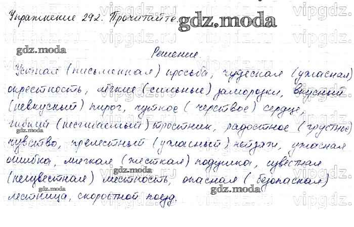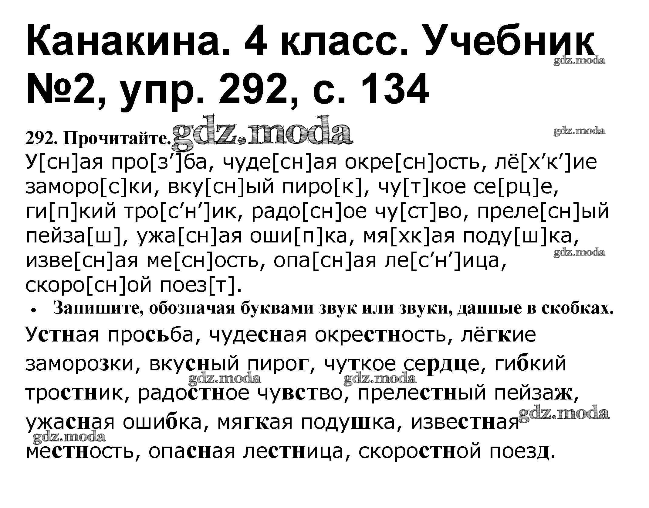 ОТВЕТ на задание № 292 Учебник по Русскому языку 4 класс Канакина Школа России