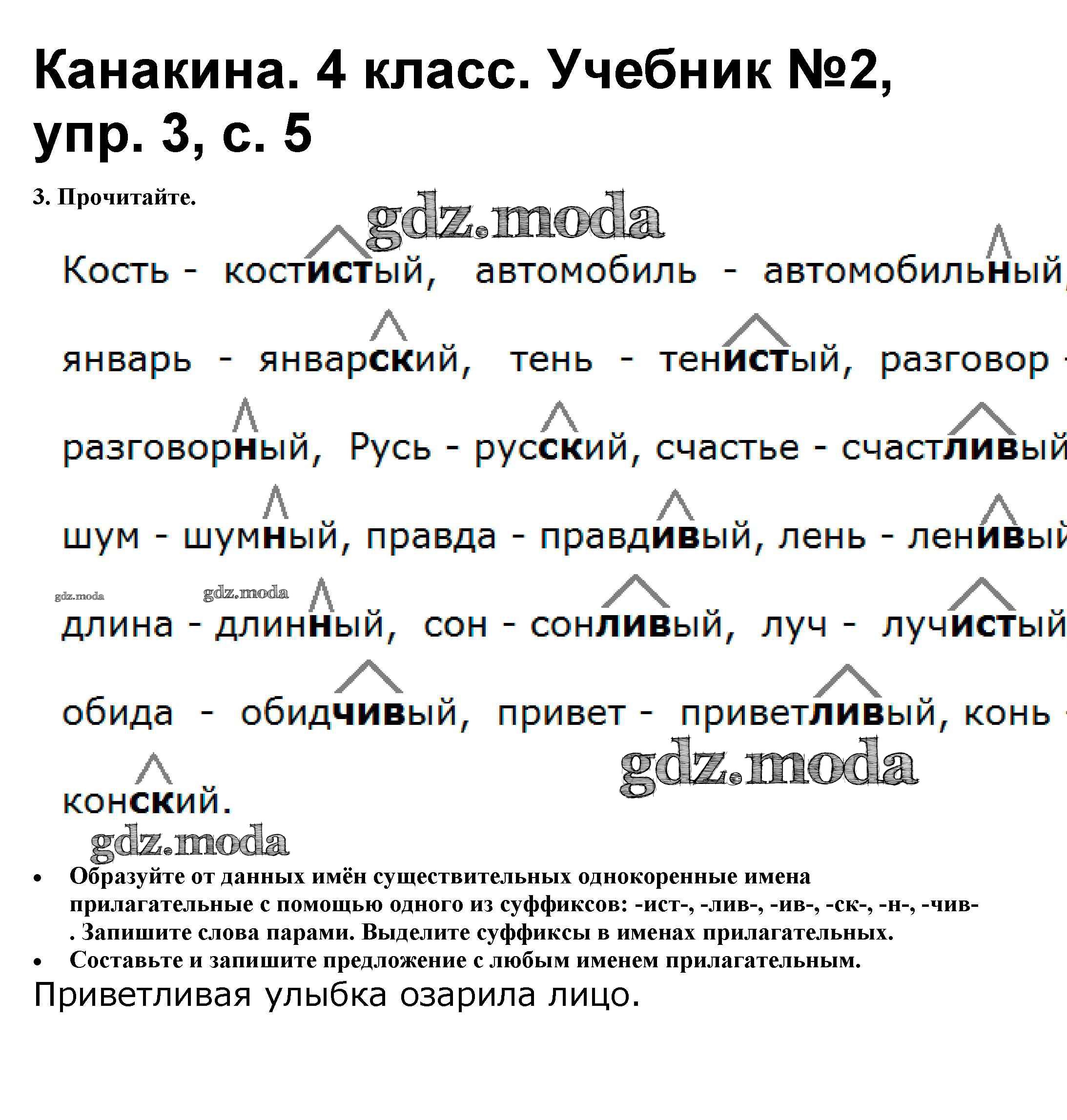 ОТВЕТ на задание № 3 Учебник по Русскому языку 4 класс Канакина Школа России