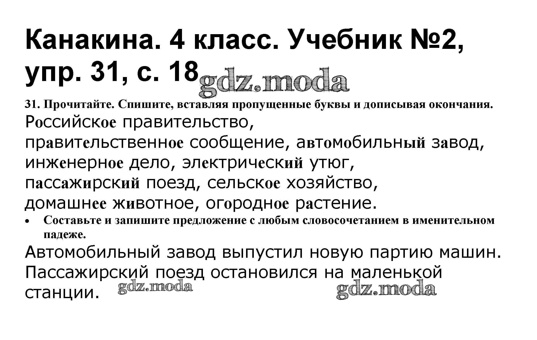 ОТВЕТ на задание № 31 Учебник по Русскому языку 4 класс Канакина Школа России