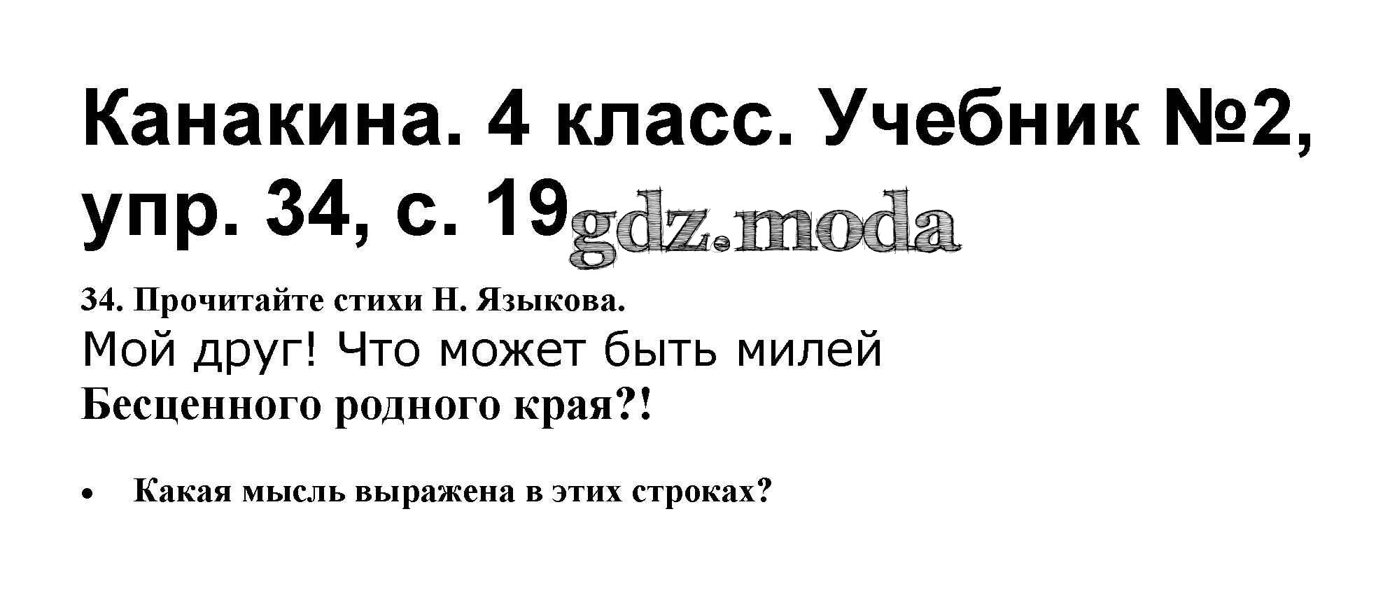 ОТВЕТ на задание № 34 Учебник по Русскому языку 4 класс Канакина Школа России