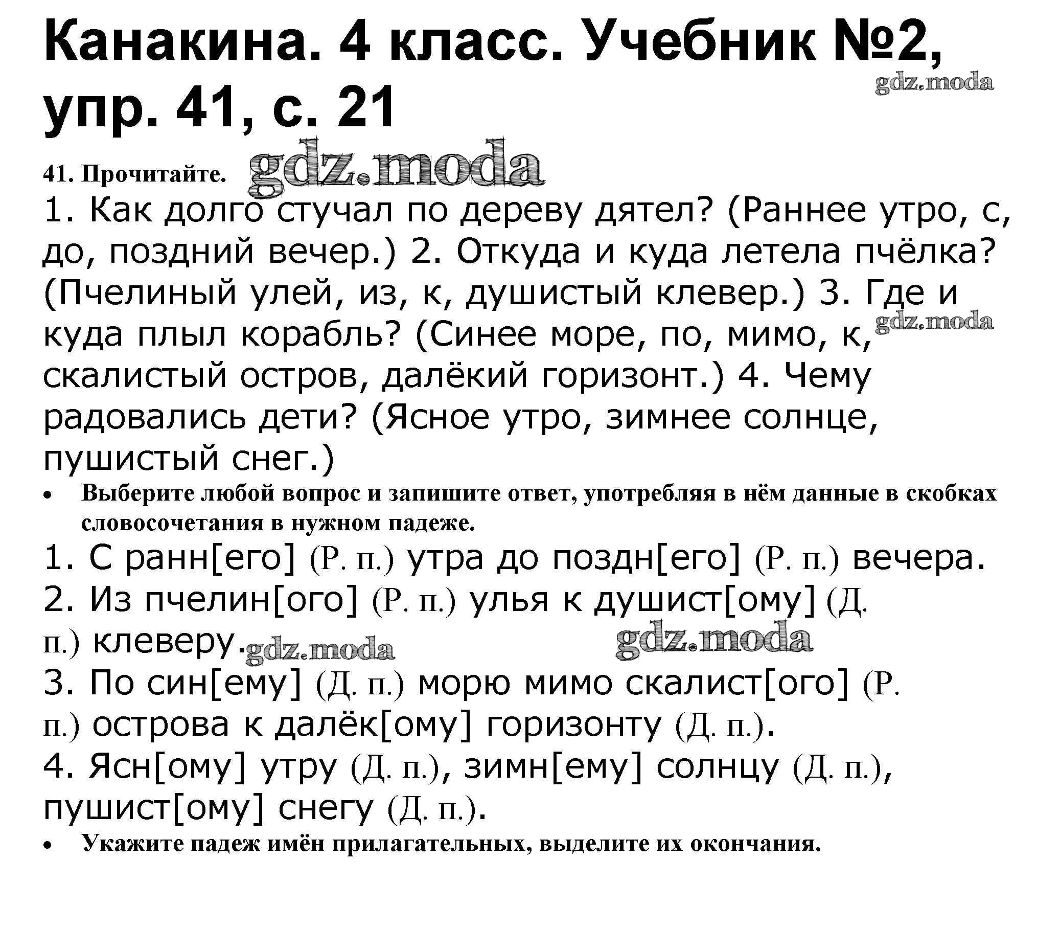 ОТВЕТ на задание № 41 Учебник по Русскому языку 4 класс Канакина Школа России