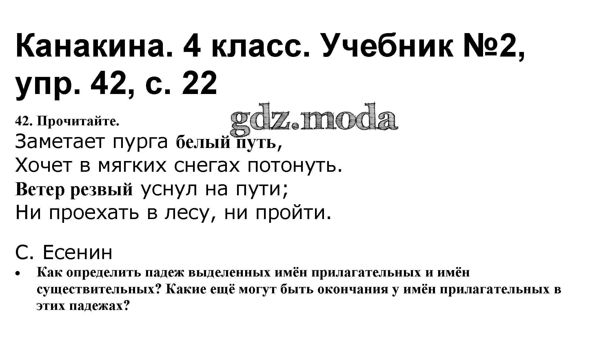 ОТВЕТ на задание № 42 Учебник по Русскому языку 4 класс Канакина Школа России