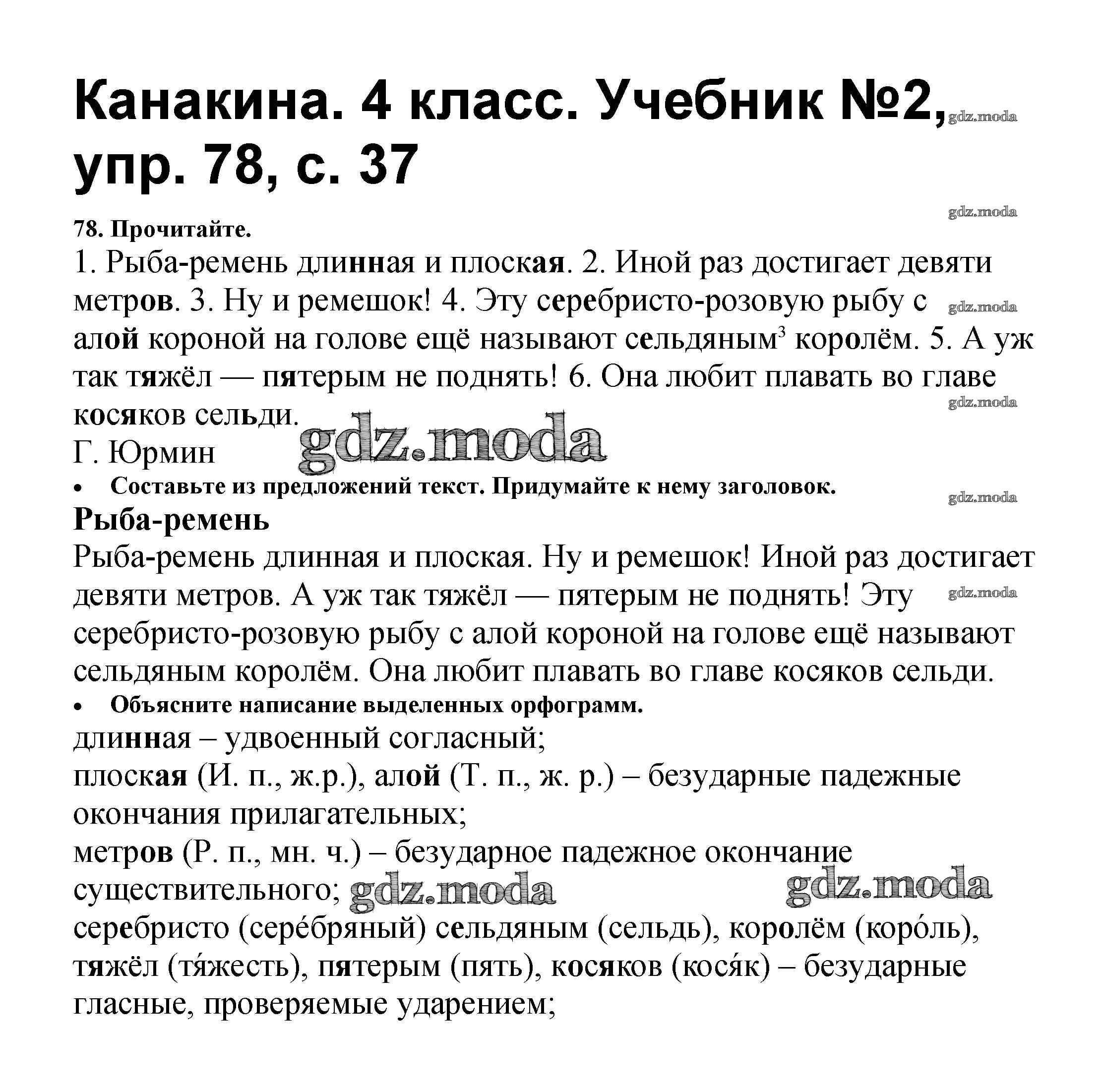ОТВЕТ на задание № 78 Учебник по Русскому языку 4 класс Канакина Школа России