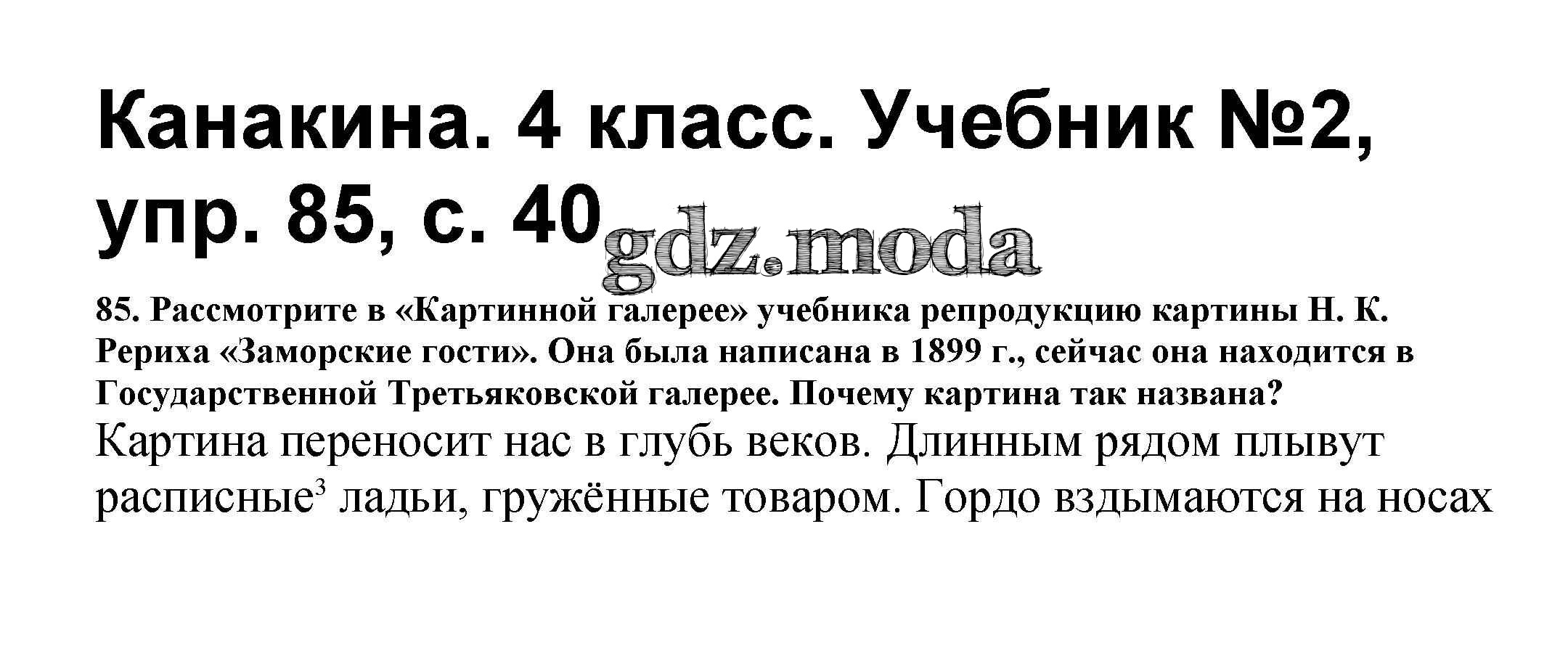 ОТВЕТ на задание № 85 Учебник по Русскому языку 4 класс Канакина Школа России