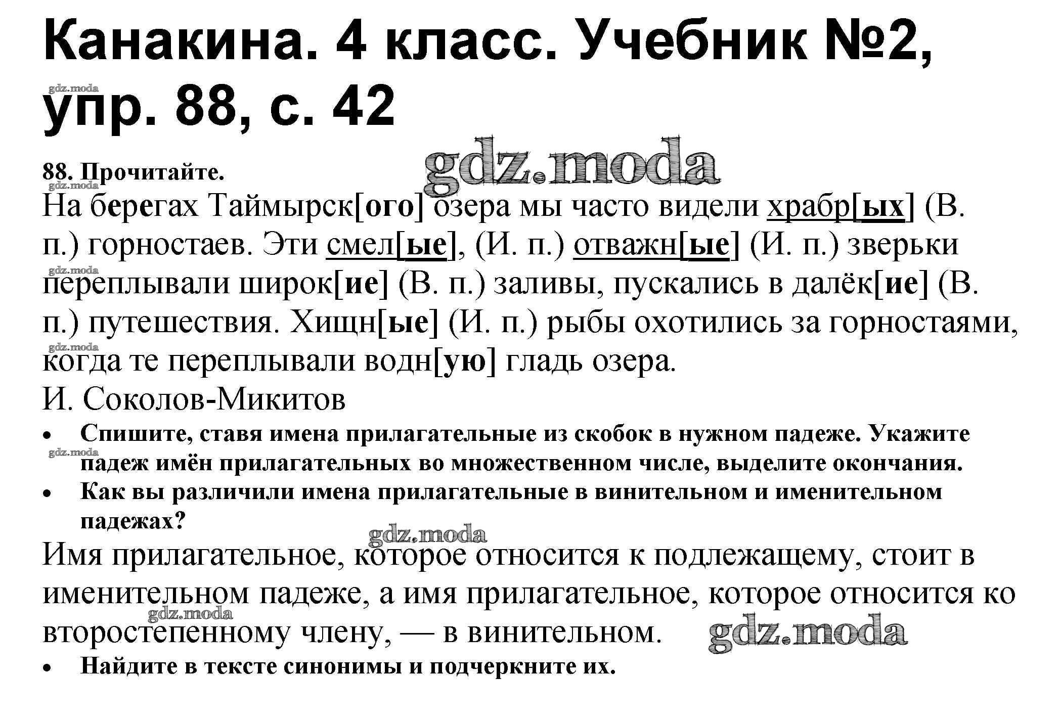 ОТВЕТ на задание № 88 Учебник по Русскому языку 4 класс Канакина Школа России