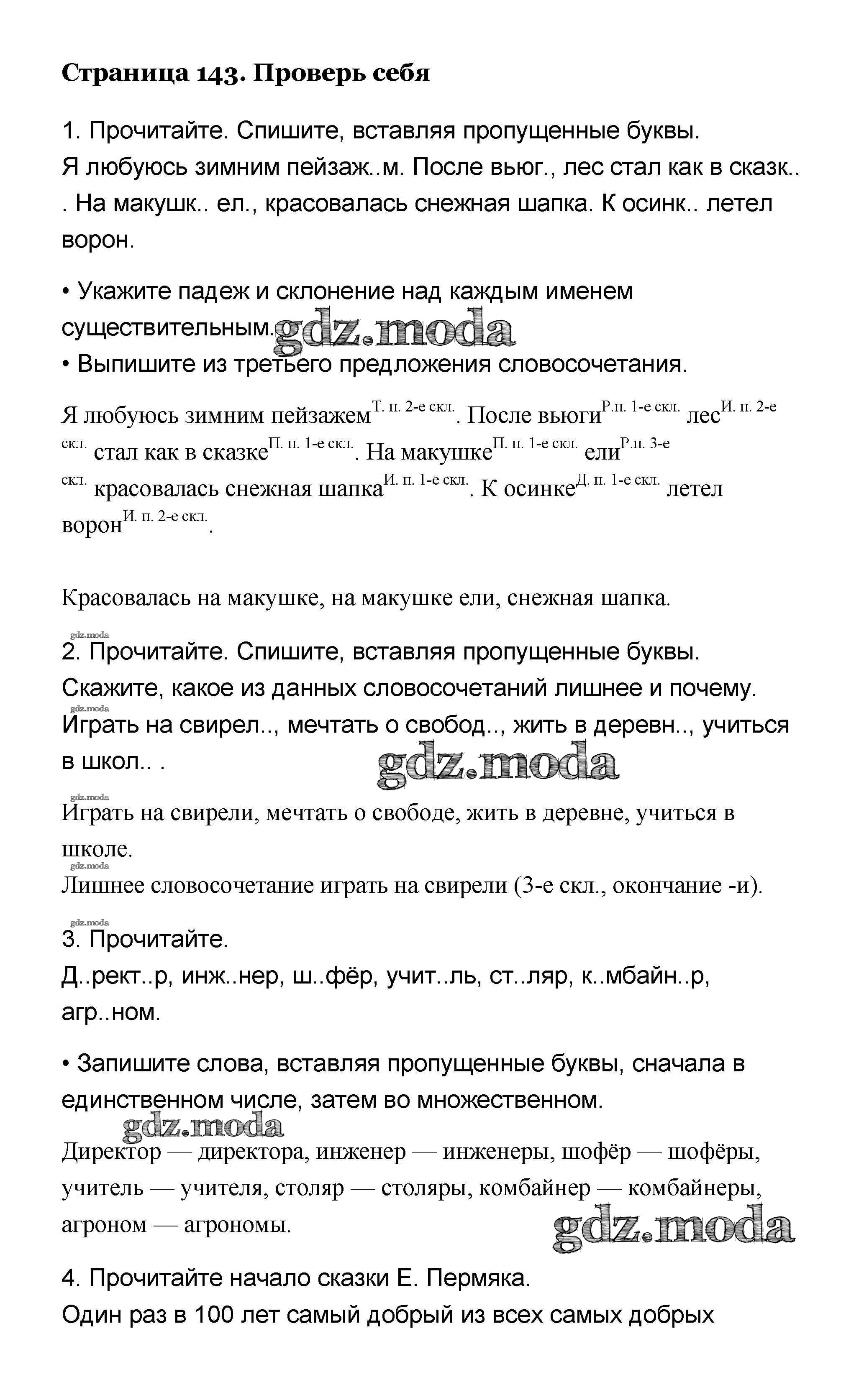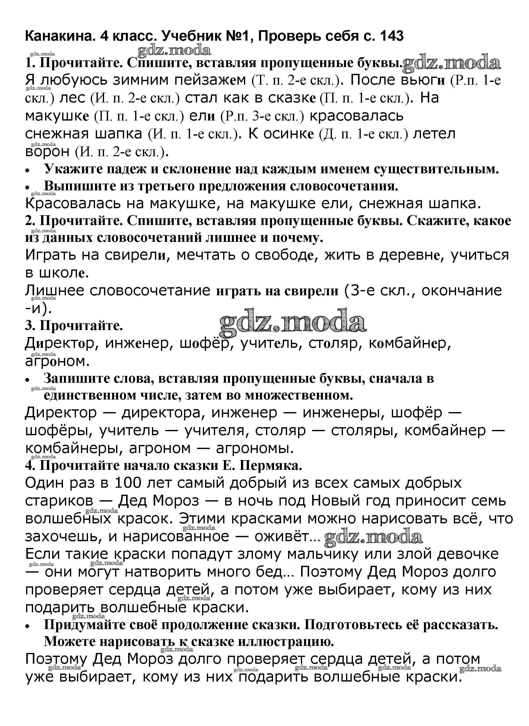 ОТВЕТ на задание № 143 Учебник по Русскому языку 4 класс Канакина Школа России