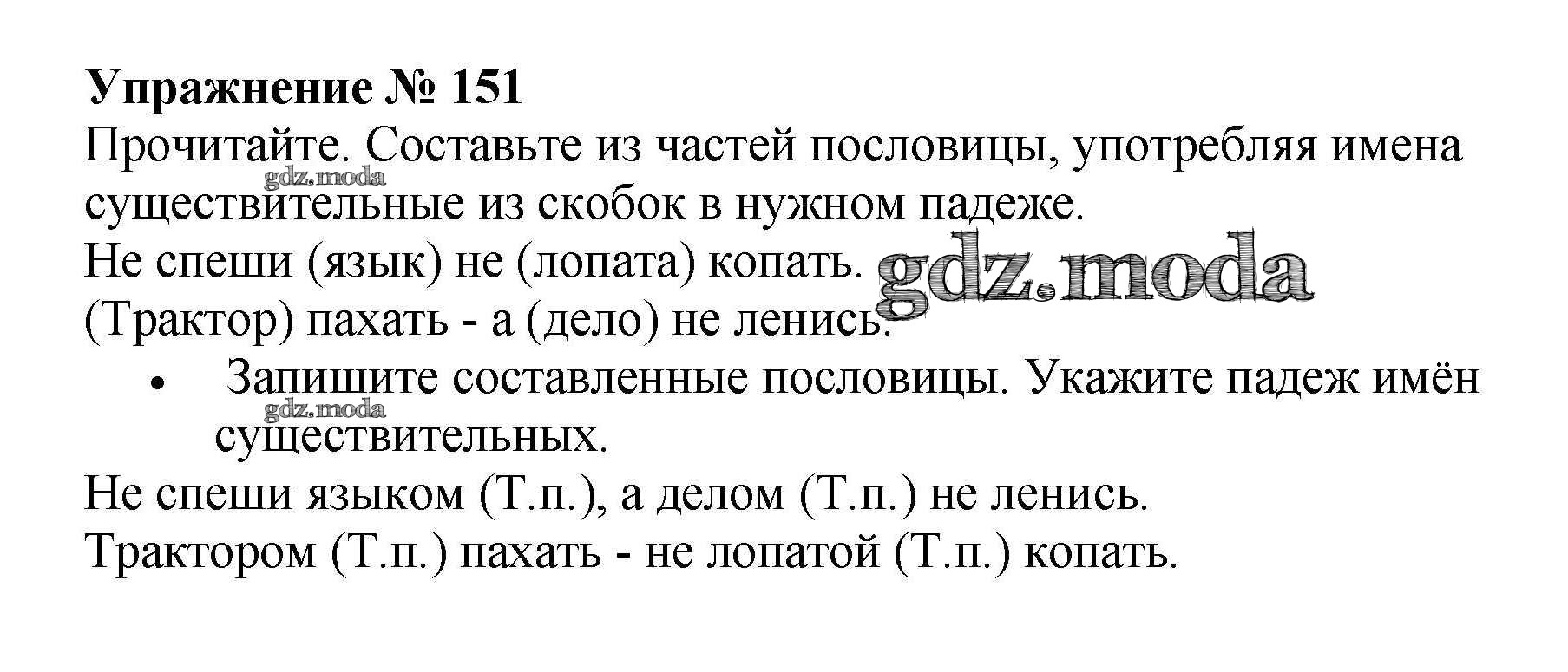 ОТВЕТ на задание № 151 Рабочая тетрадь по Русскому языку 4 класс Канакина Школа России