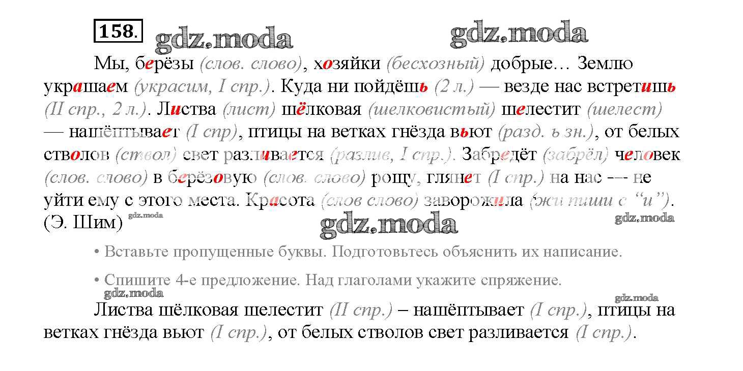 ОТВЕТ на задание № 158 Рабочая тетрадь по Русскому языку 4 класс Канакина Школа России