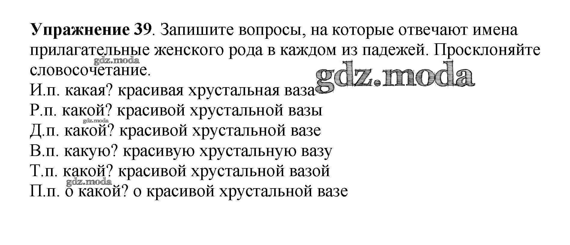 ОТВЕТ на задание № 39 Рабочая тетрадь по Русскому языку 4 класс Канакина Школа России