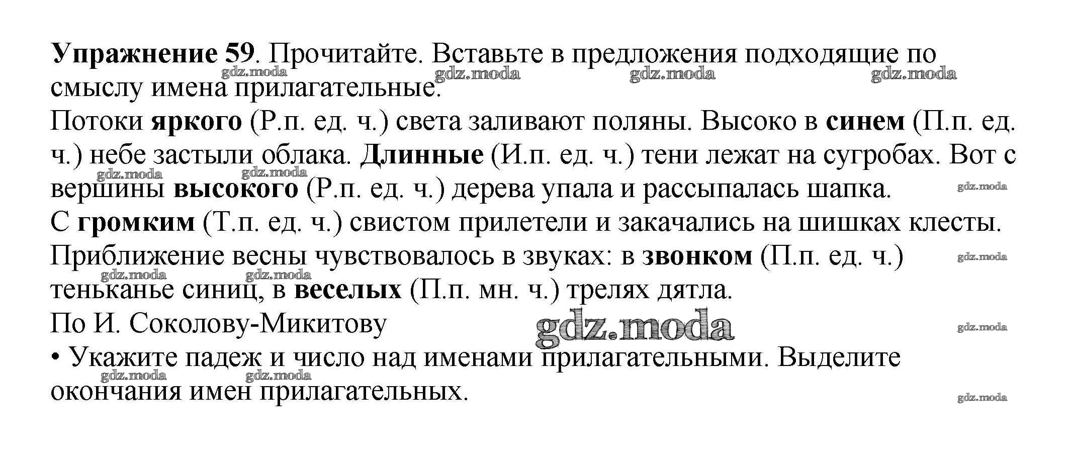 ОТВЕТ на задание № 59 Рабочая тетрадь по Русскому языку 4 класс Канакина Школа России