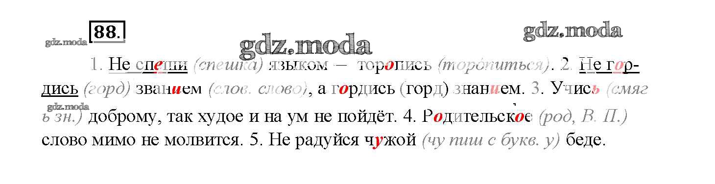 ОТВЕТ на задание № 88 Рабочая тетрадь по Русскому языку 4 класс Канакина Школа России