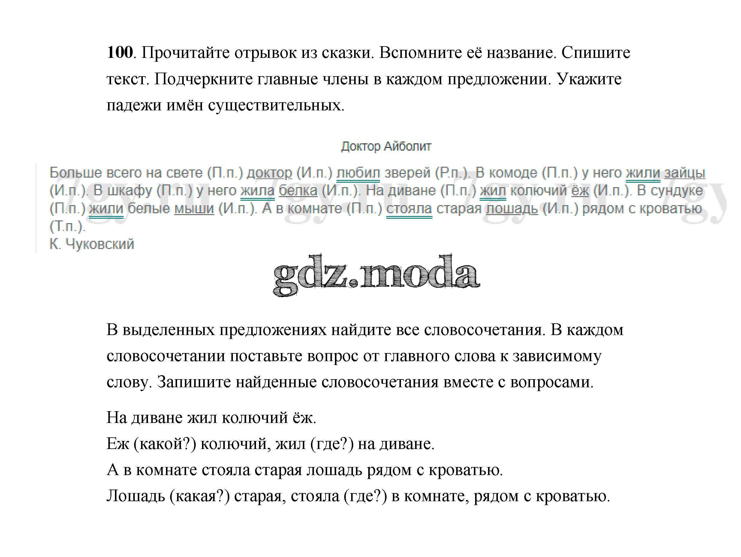 ОТВЕТ на задание № 100 Учебник по Русскому языку 4 класс Климанова Перспектива