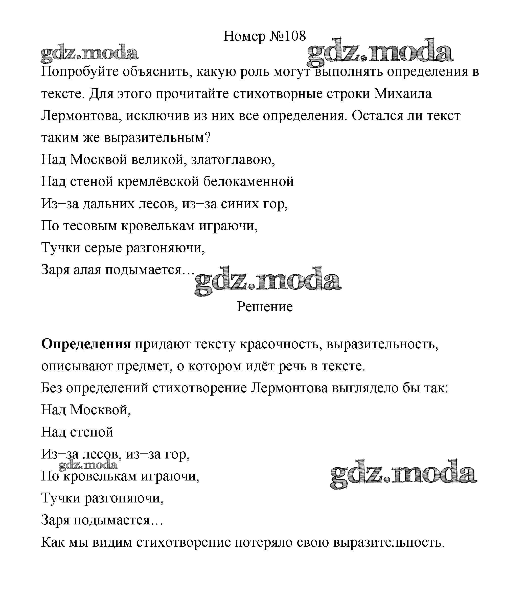 ОТВЕТ на задание № 108 Учебник по Русскому языку 4 класс Климанова Перспектива