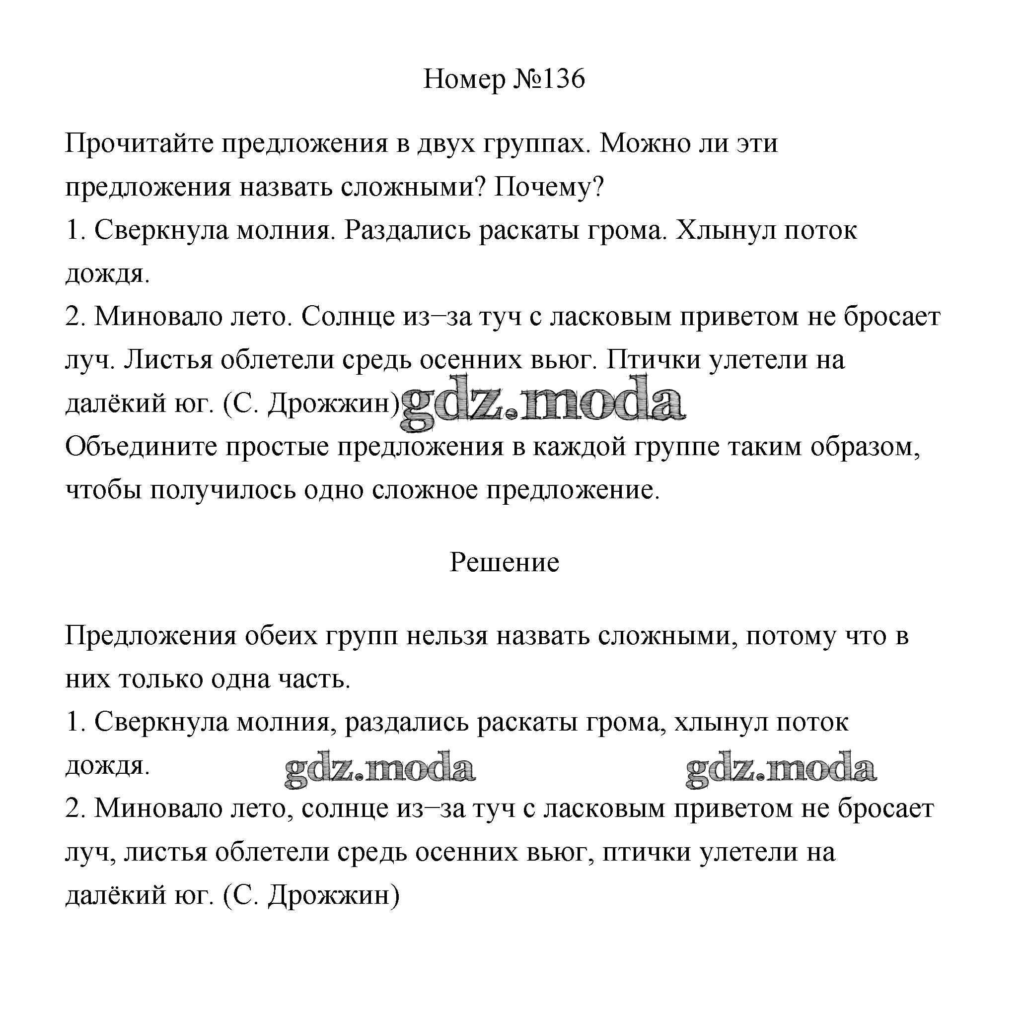 ОТВЕТ на задание № 136 Учебник по Русскому языку 4 класс Климанова Перспектива
