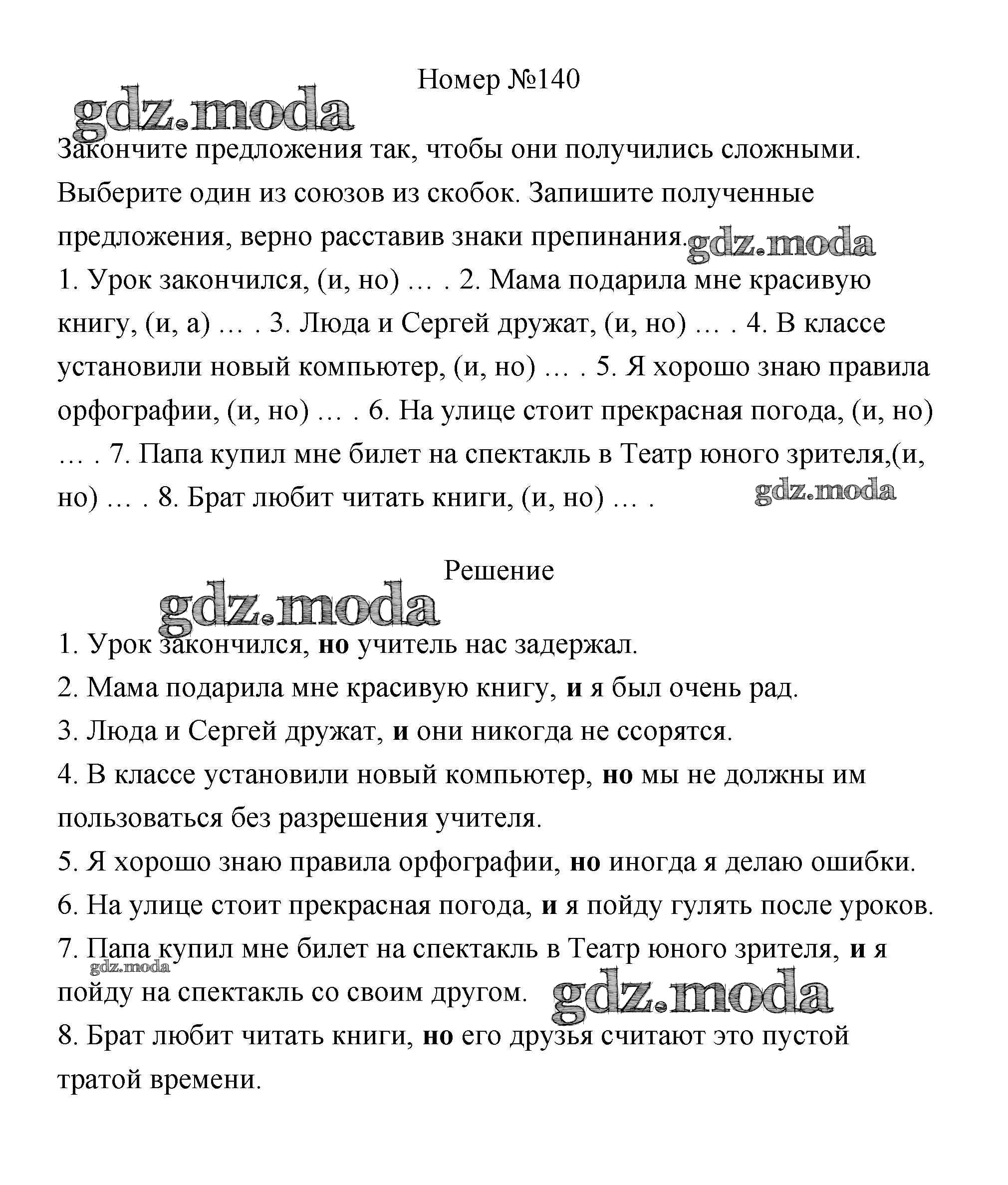 ОТВЕТ на задание № 140 Учебник по Русскому языку 4 класс Климанова Перспектива