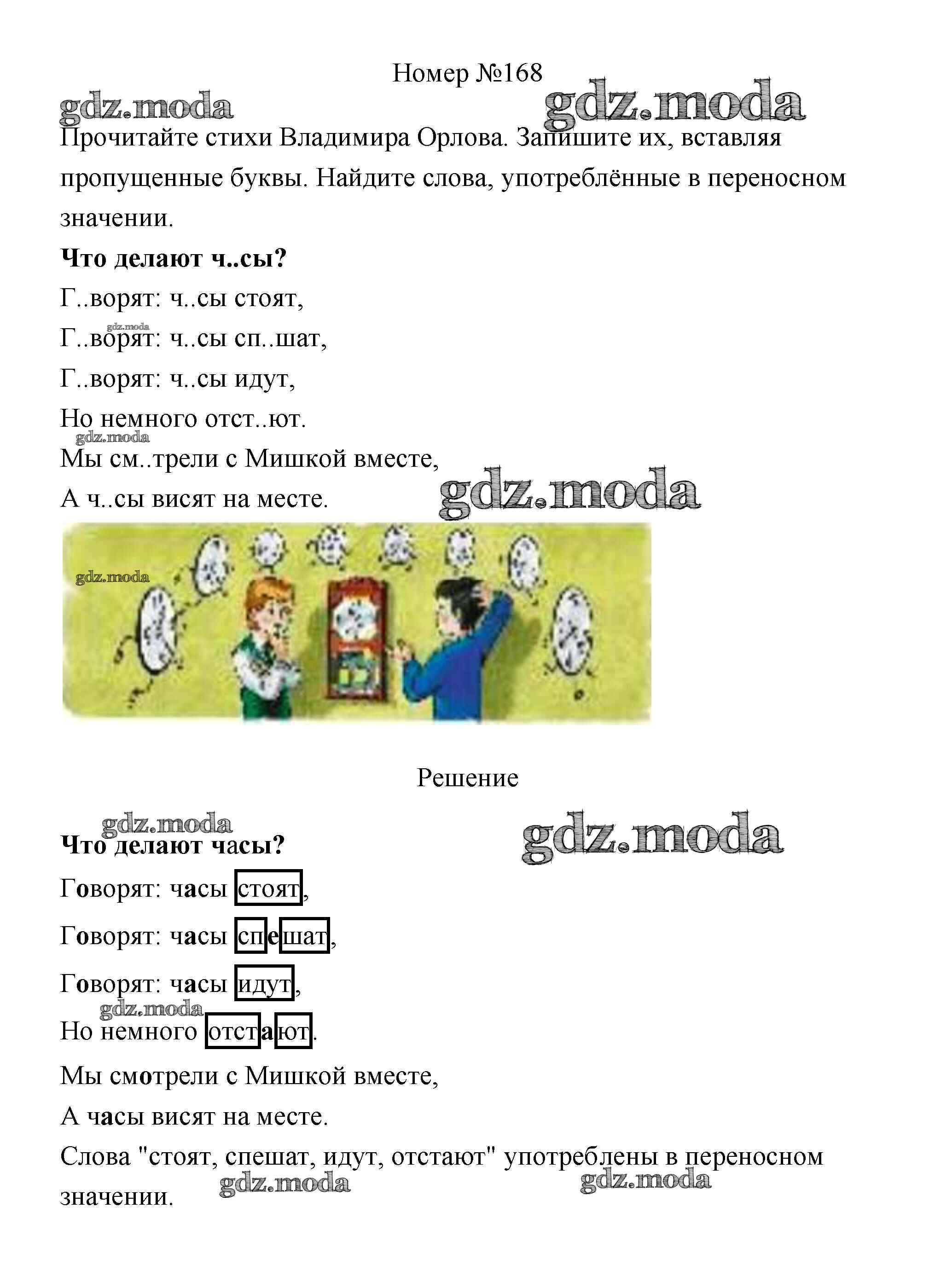 ОТВЕТ на задание № 168 Учебник по Русскому языку 4 класс Климанова Перспектива