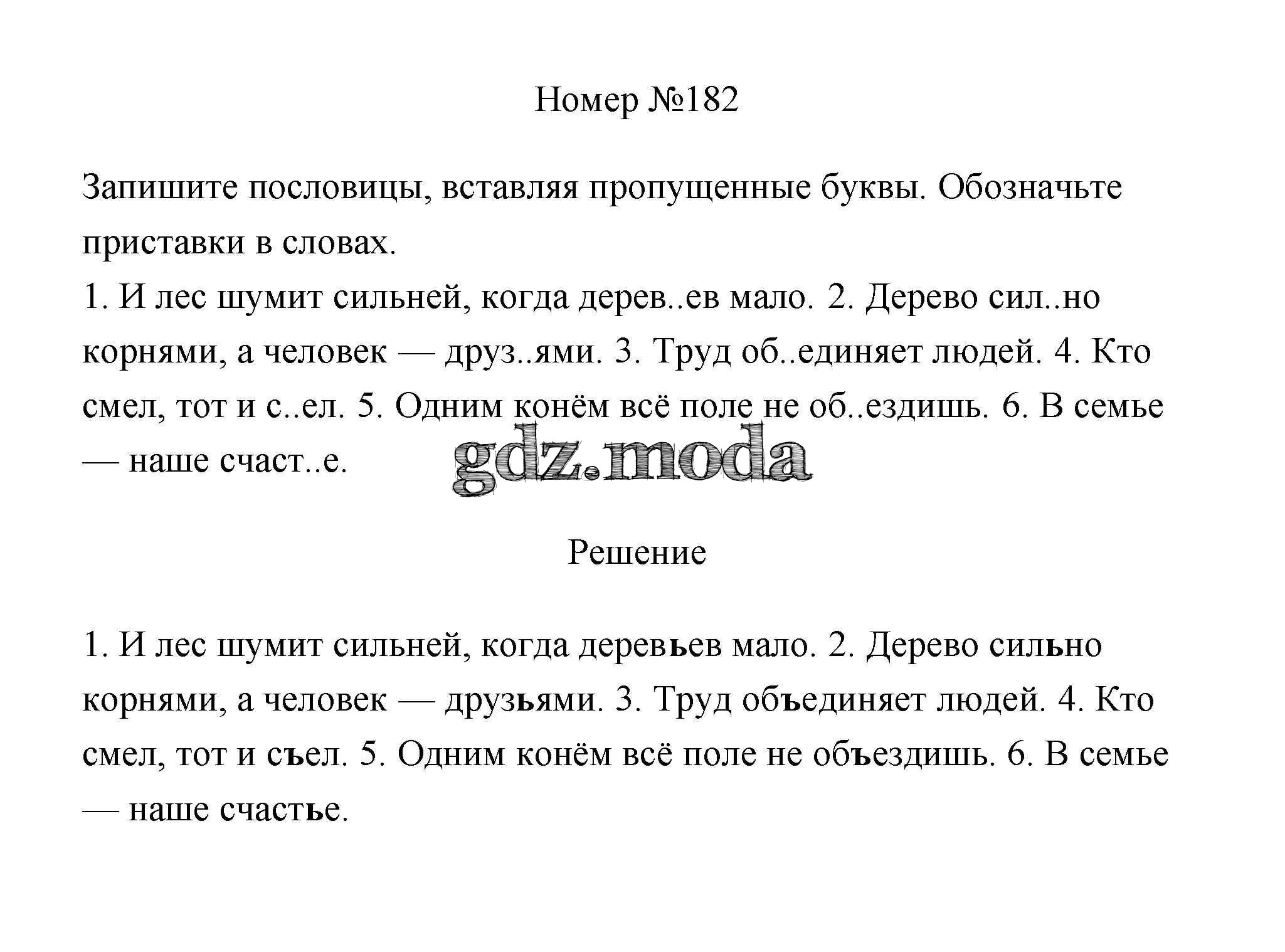 ОТВЕТ на задание № 182 Учебник по Русскому языку 4 класс Климанова Перспектива
