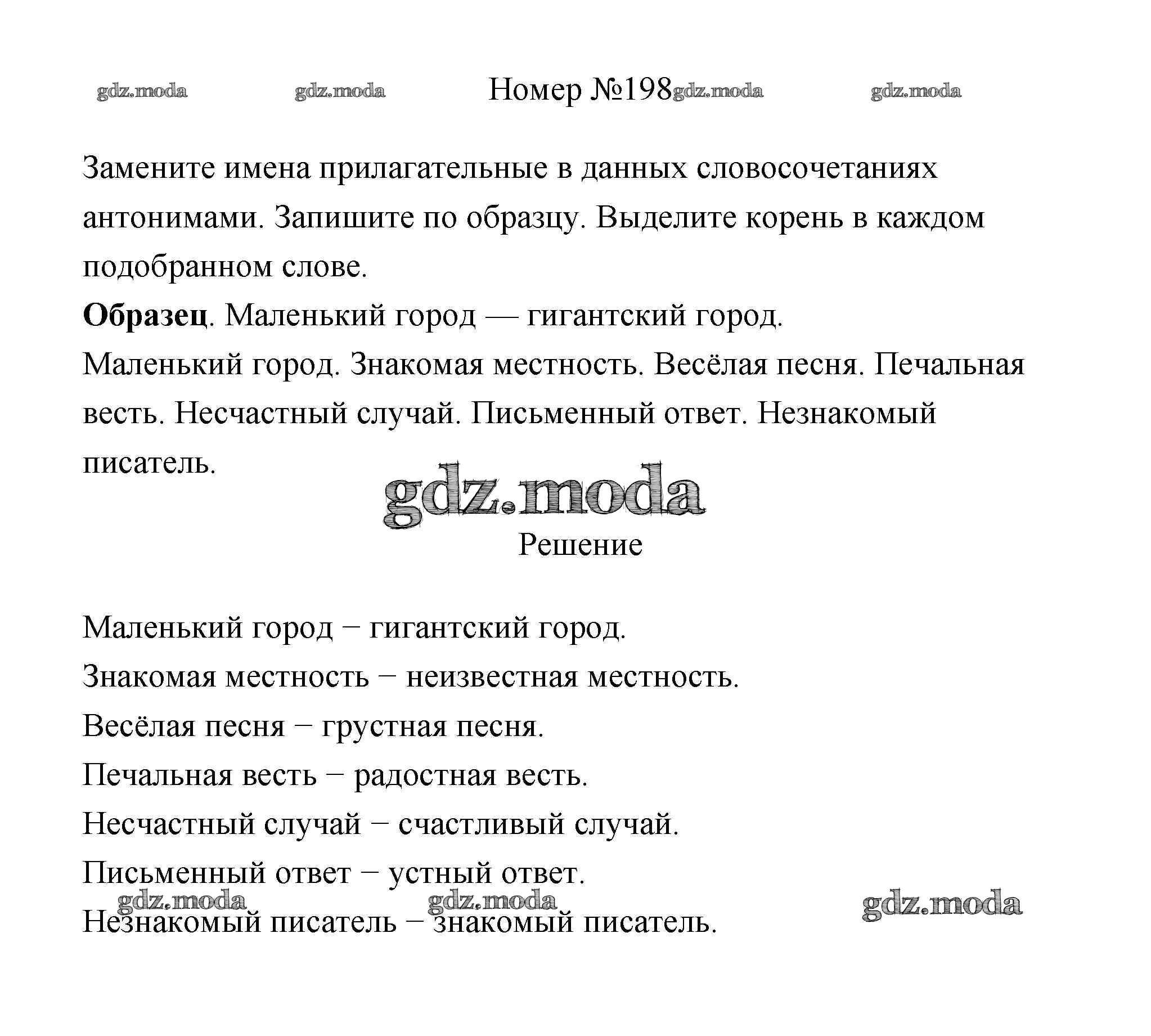 ОТВЕТ на задание № 198 Учебник по Русскому языку 4 класс Климанова Перспектива