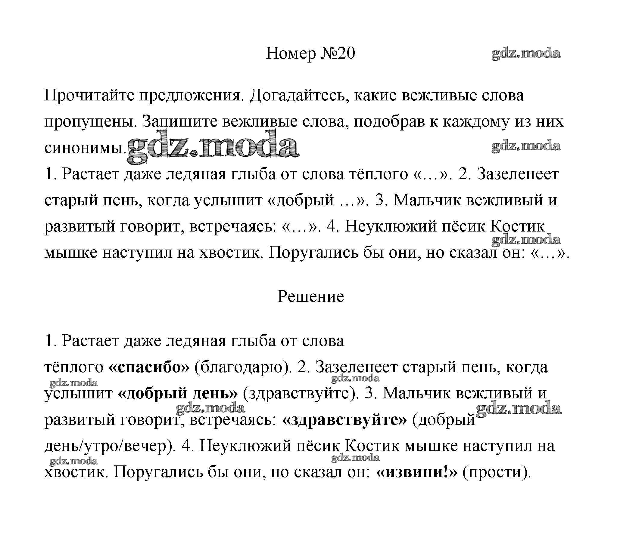 ОТВЕТ на задание № 20 Учебник по Русскому языку 4 класс Климанова Перспектива