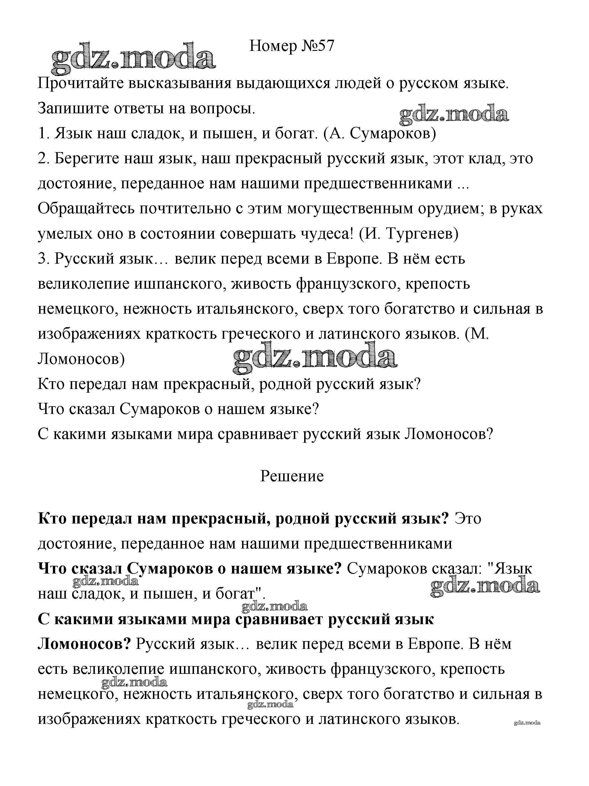 ОТВЕТ на задание № 57 Учебник по Русскому языку 4 класс Климанова Перспектива