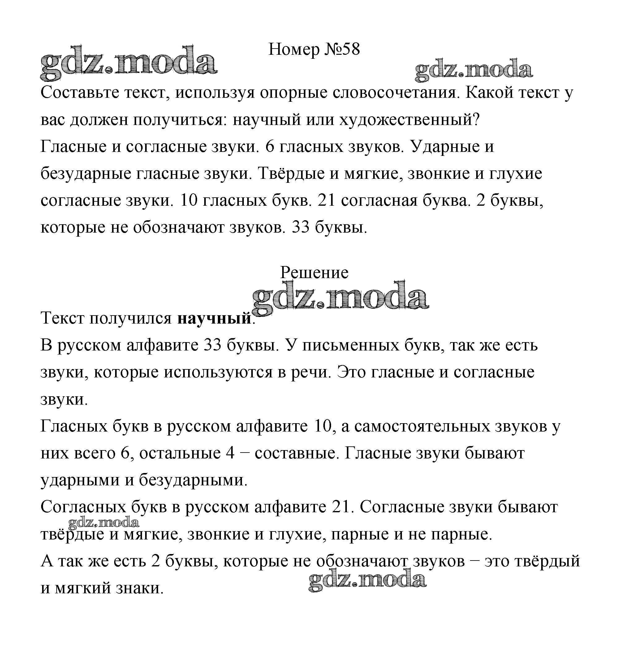 ОТВЕТ на задание № 58 Учебник по Русскому языку 4 класс Климанова Перспектива