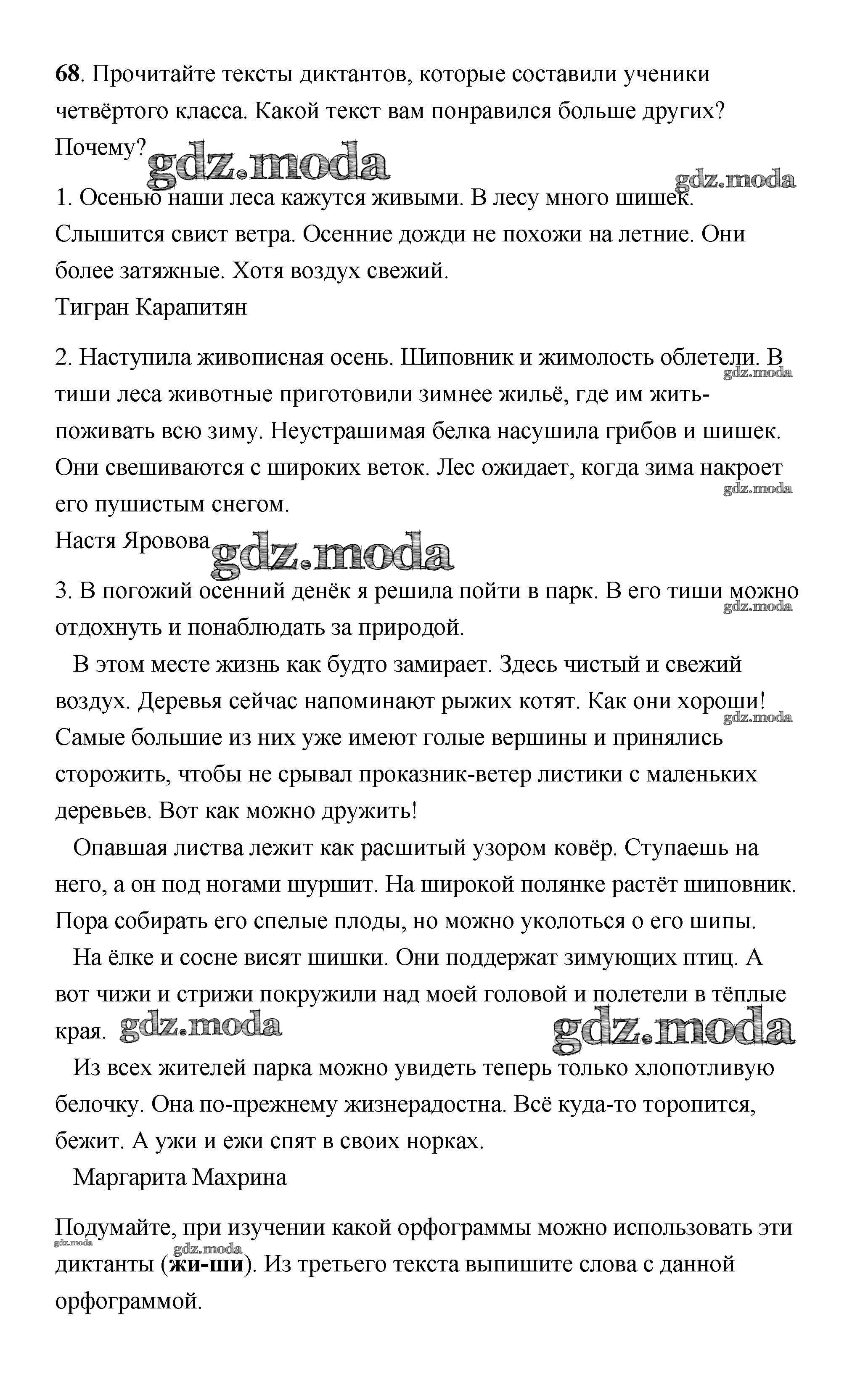 ОТВЕТ на задание № 68 Учебник по Русскому языку 4 класс Климанова Перспектива