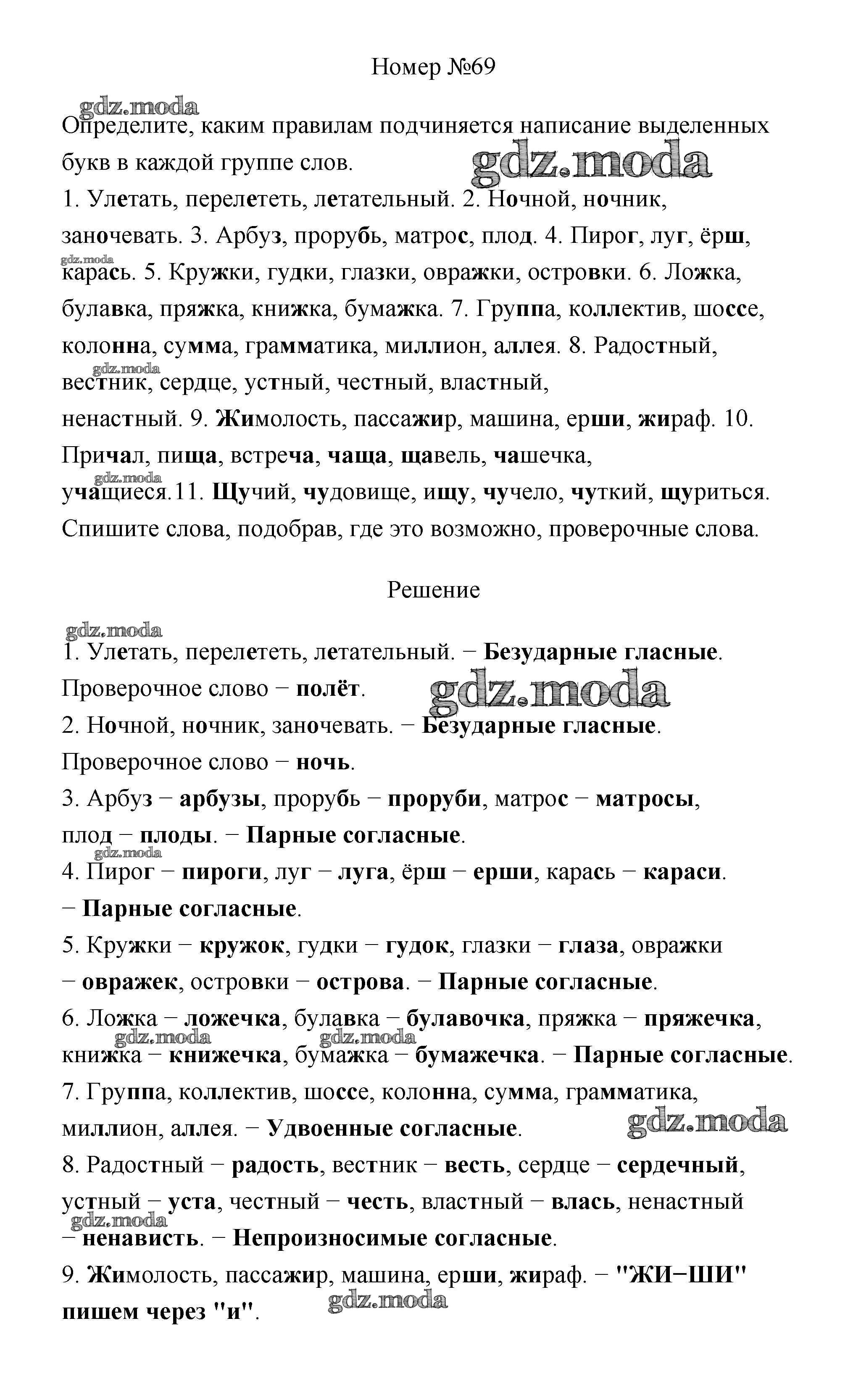ОТВЕТ на задание № 69 Учебник по Русскому языку 4 класс Климанова Перспектива