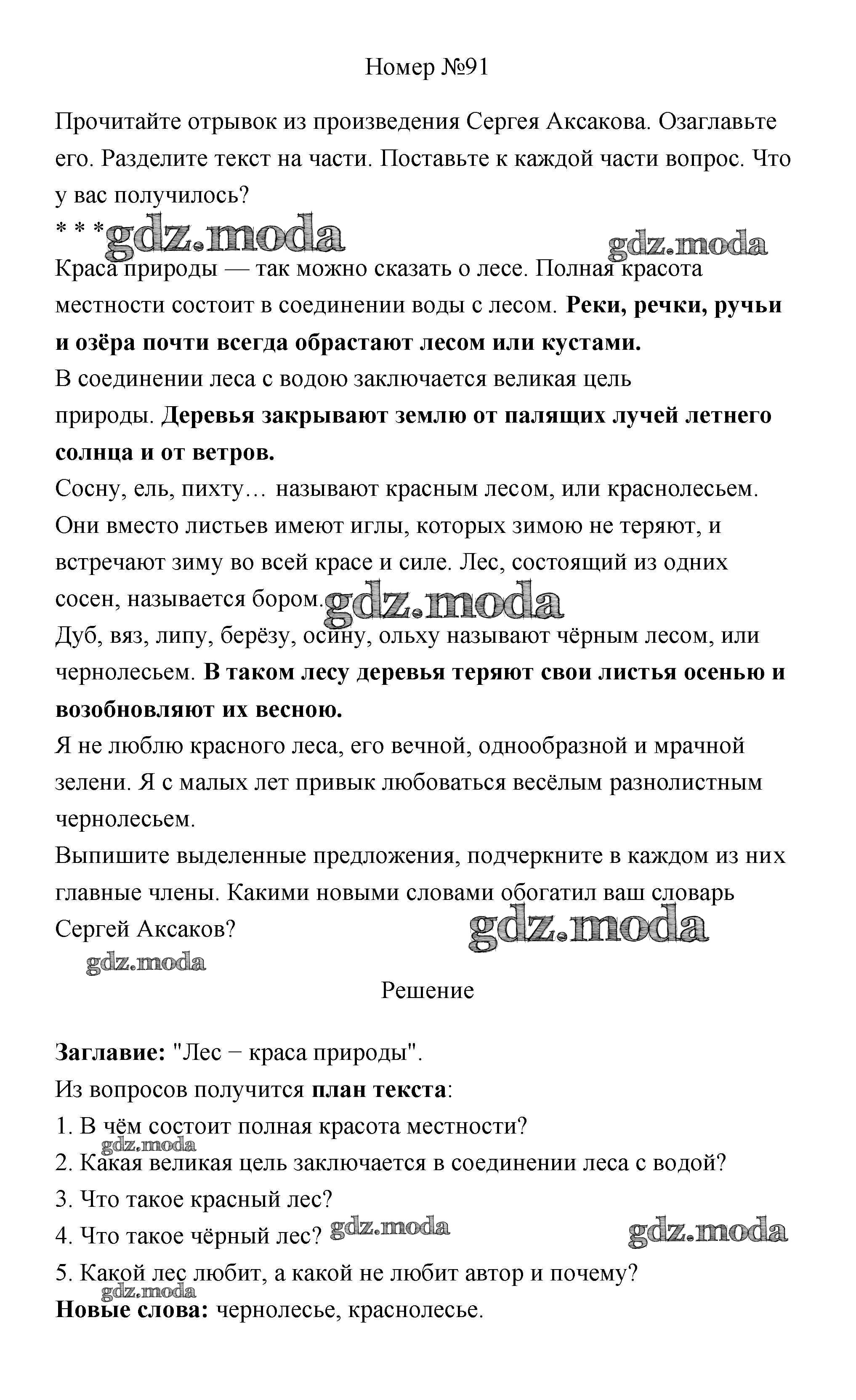 ОТВЕТ на задание № 91 Учебник по Русскому языку 4 класс Климанова Перспектива