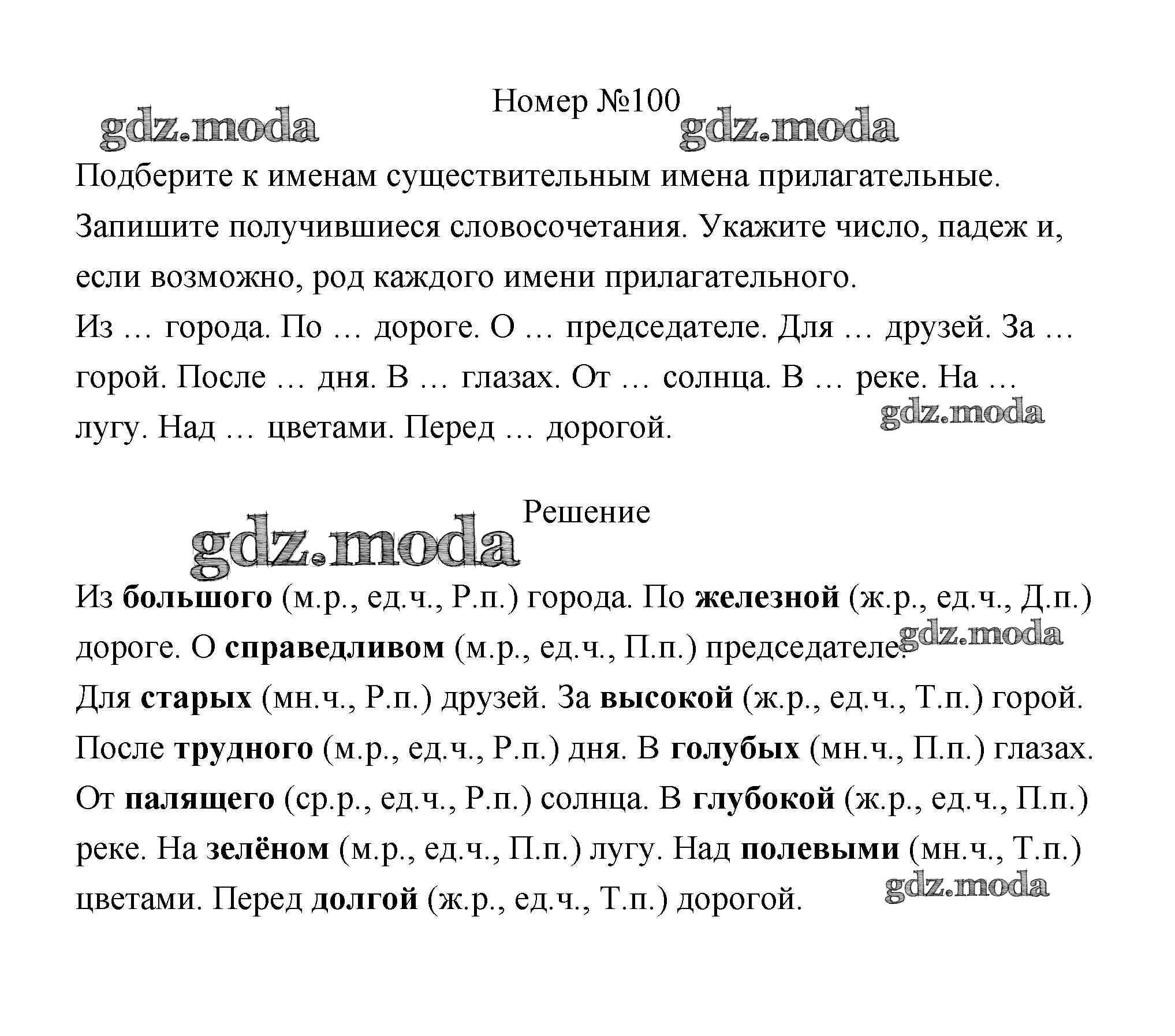 ОТВЕТ на задание № 100 Учебник по Русскому языку 4 класс Климанова Перспектива