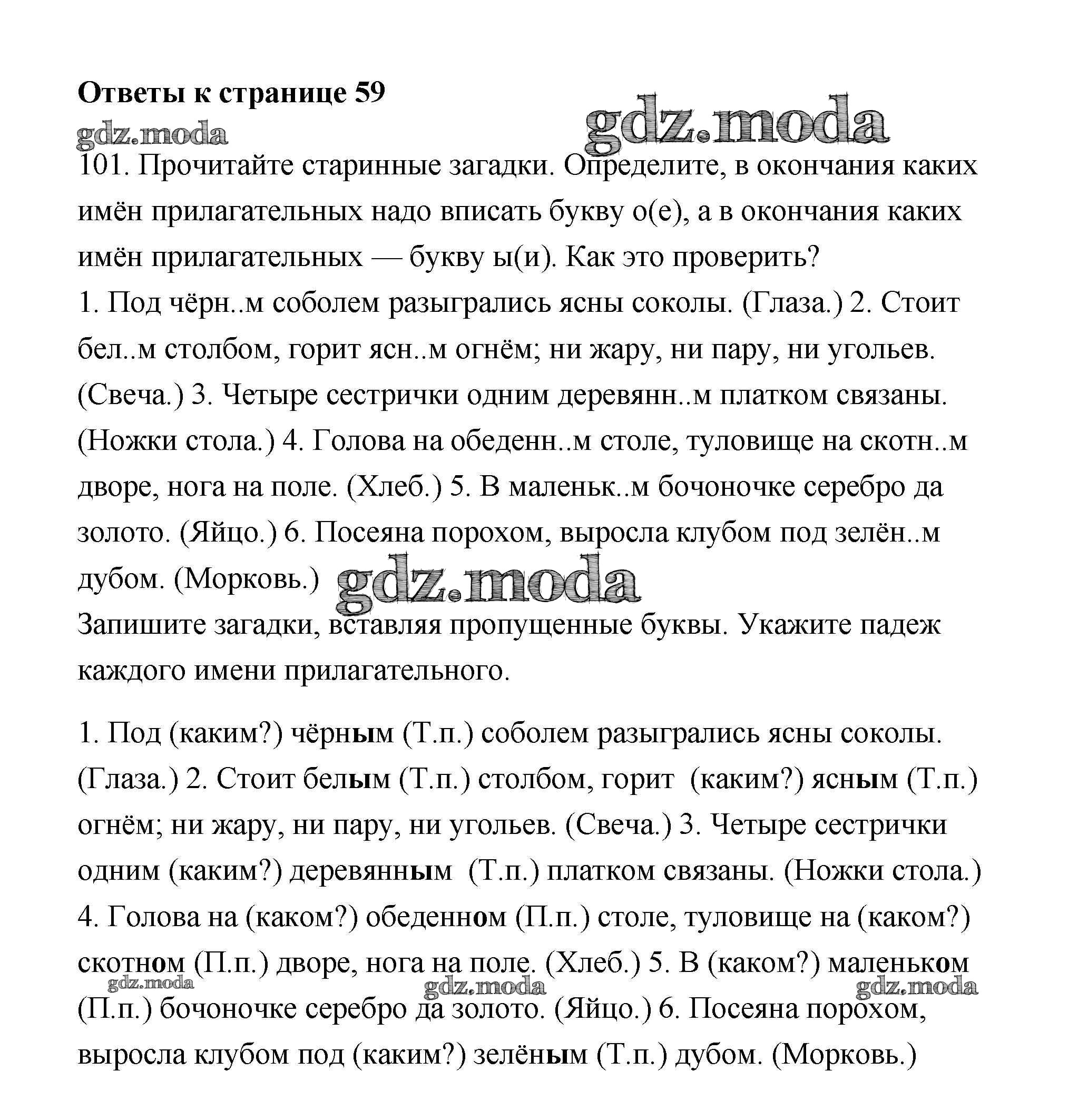 ОТВЕТ на задание № 101 Учебник по Русскому языку 4 класс Климанова Перспектива