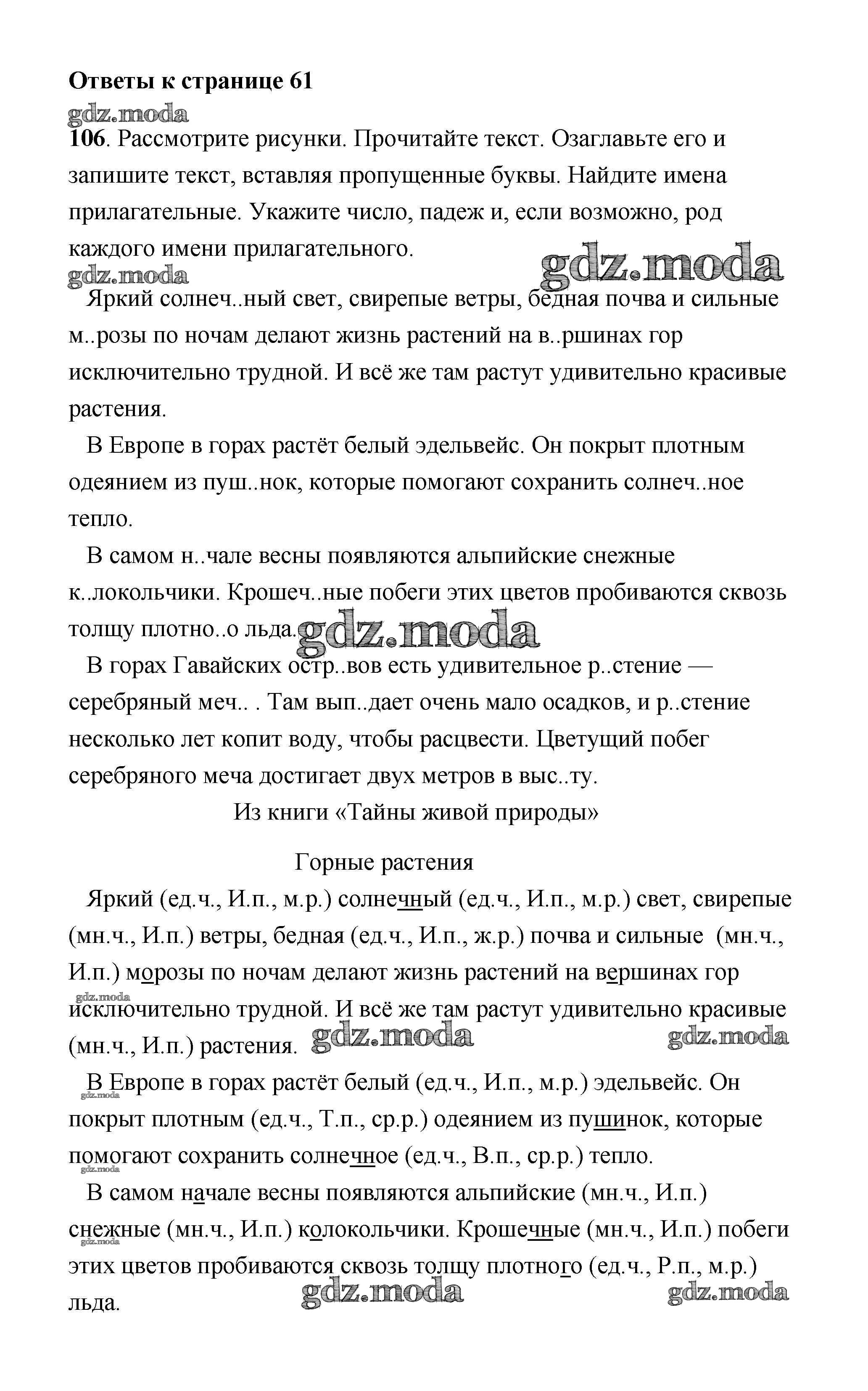 ОТВЕТ на задание № 106 Учебник по Русскому языку 4 класс Климанова Перспектива