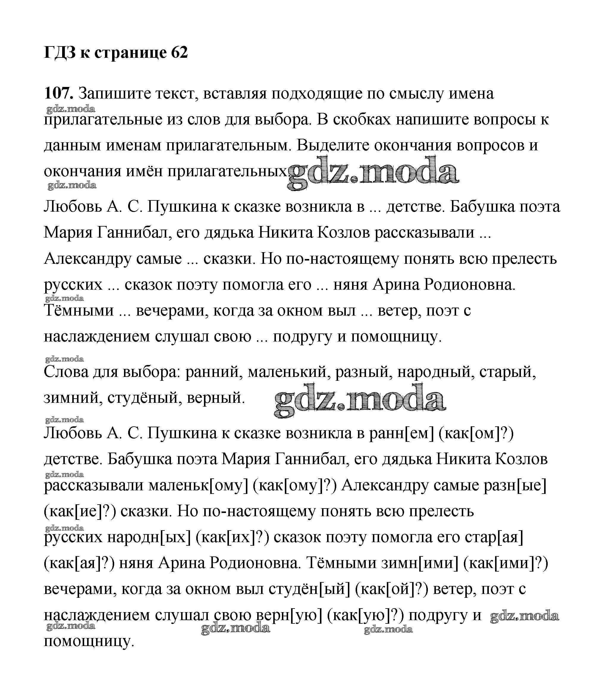 ОТВЕТ на задание № 107 Учебник по Русскому языку 4 класс Климанова Перспектива