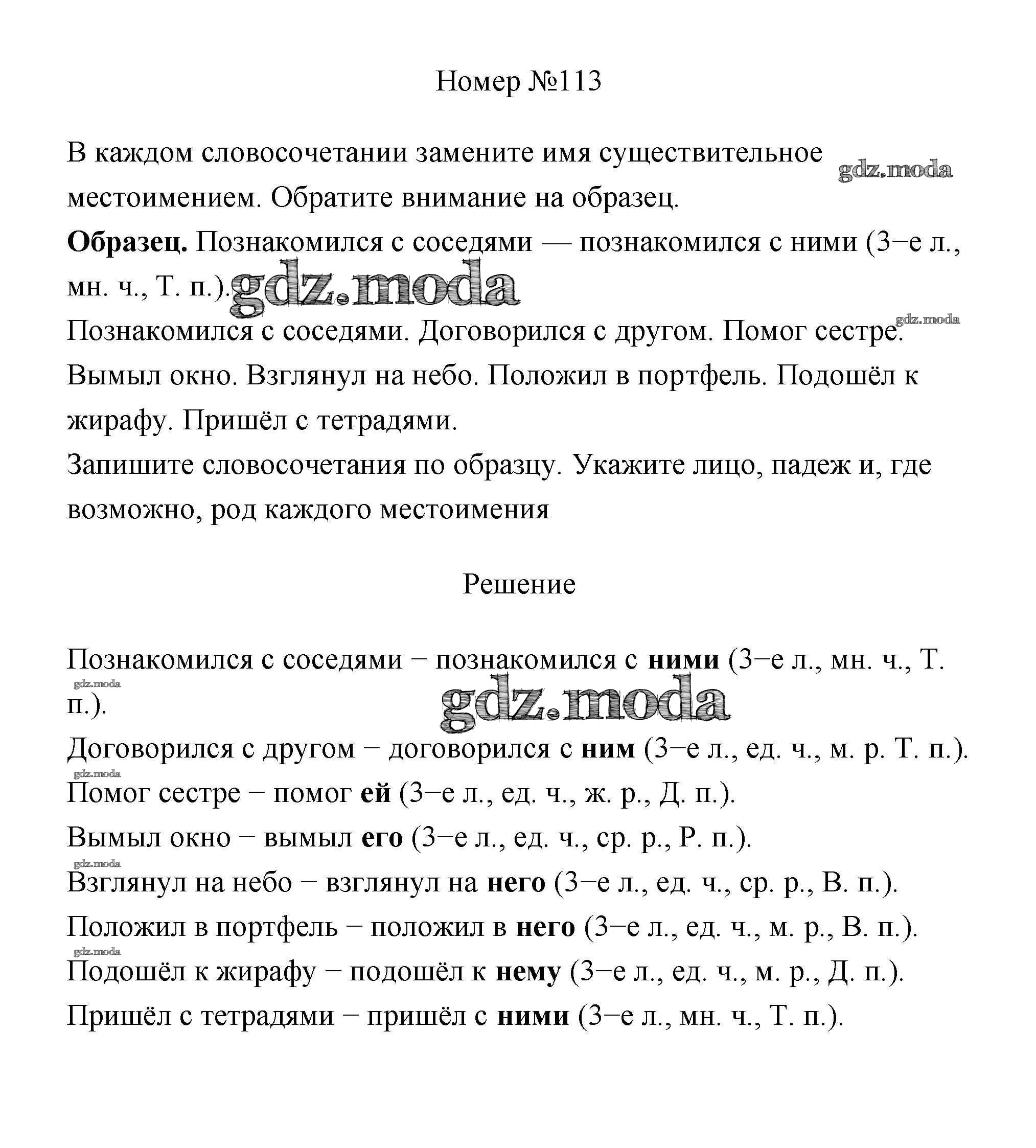 ОТВЕТ на задание № 113 Учебник по Русскому языку 4 класс Климанова Перспектива
