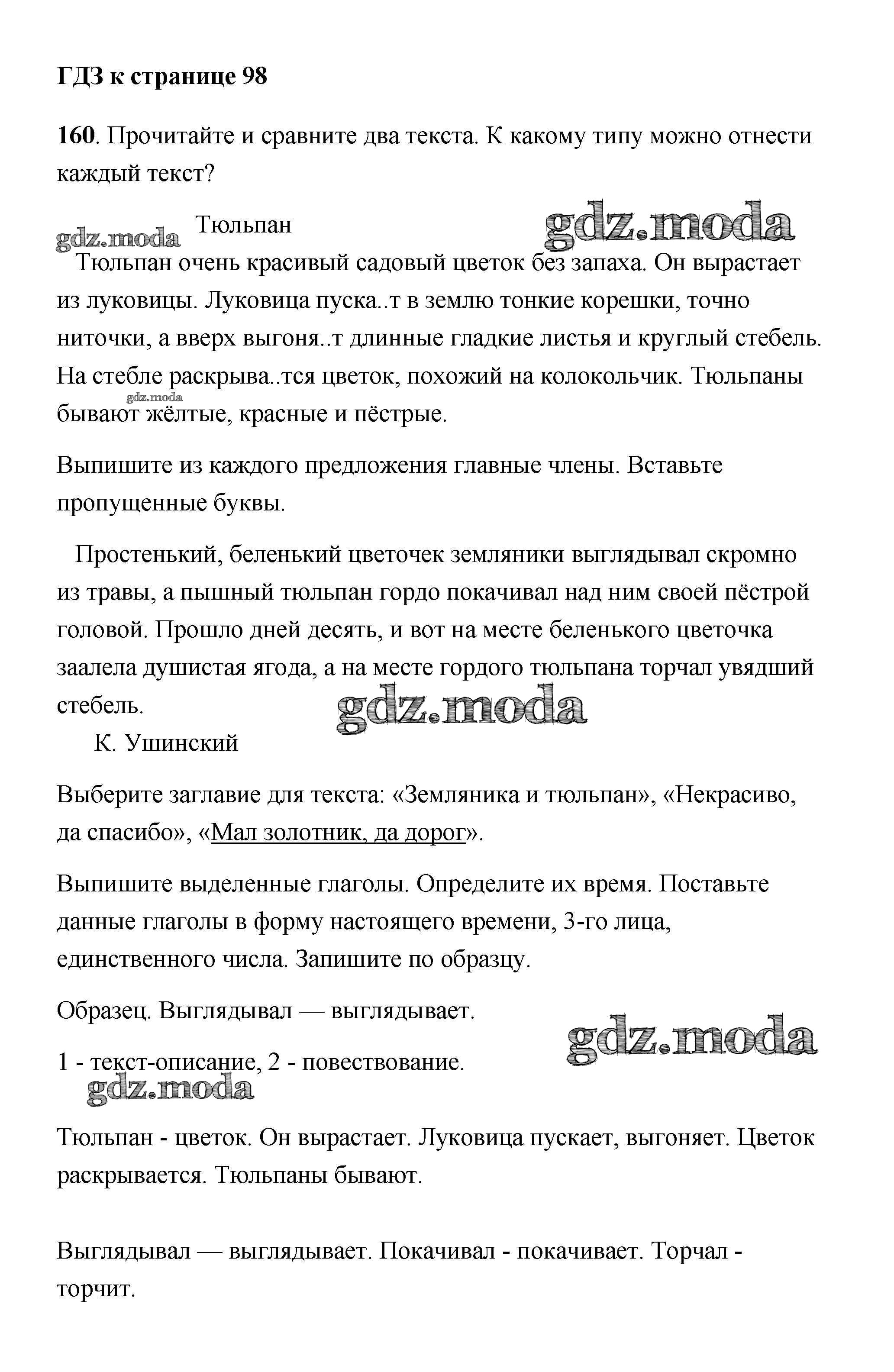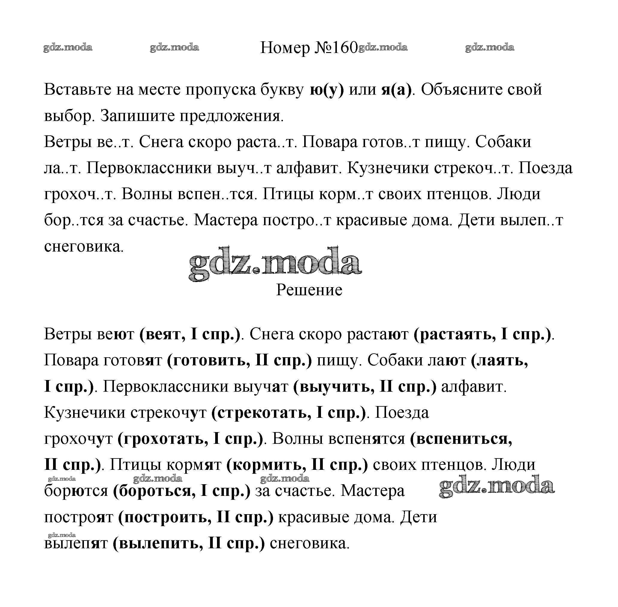 ОТВЕТ на задание № 160 Учебник по Русскому языку 4 класс Климанова Перспектива