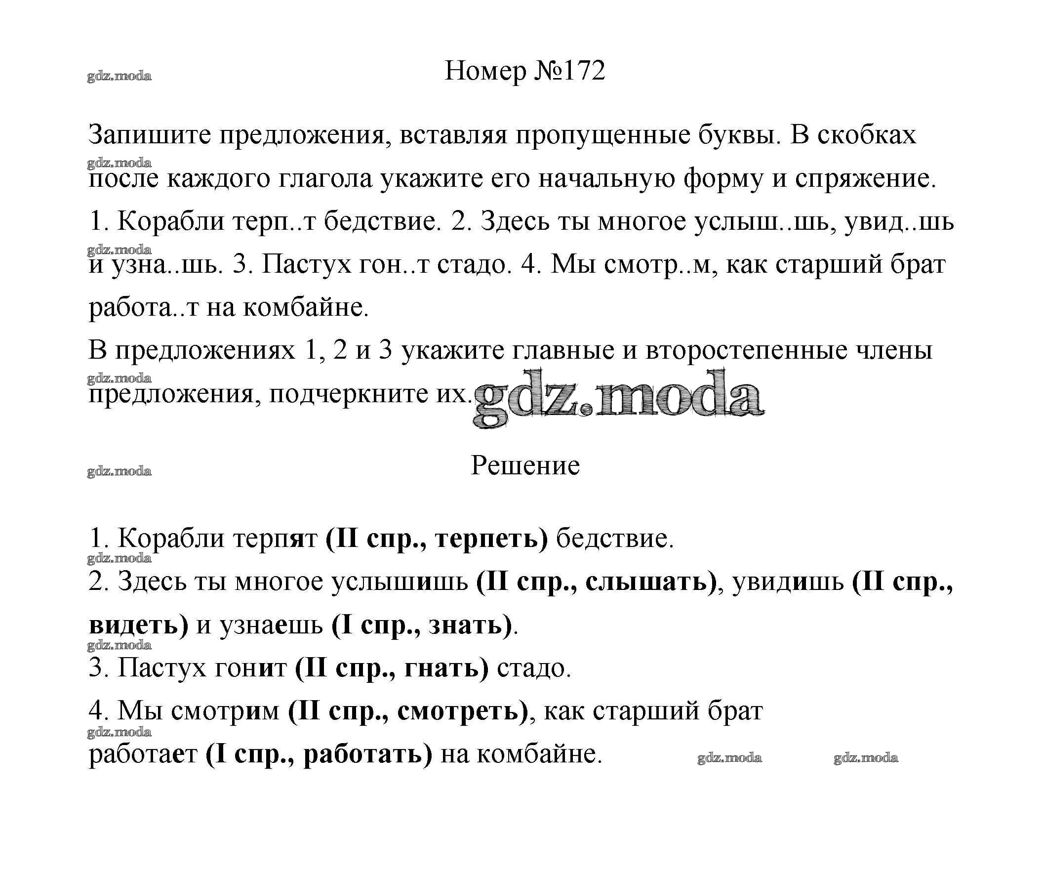 ОТВЕТ на задание № 172 Учебник по Русскому языку 4 класс Климанова Перспектива