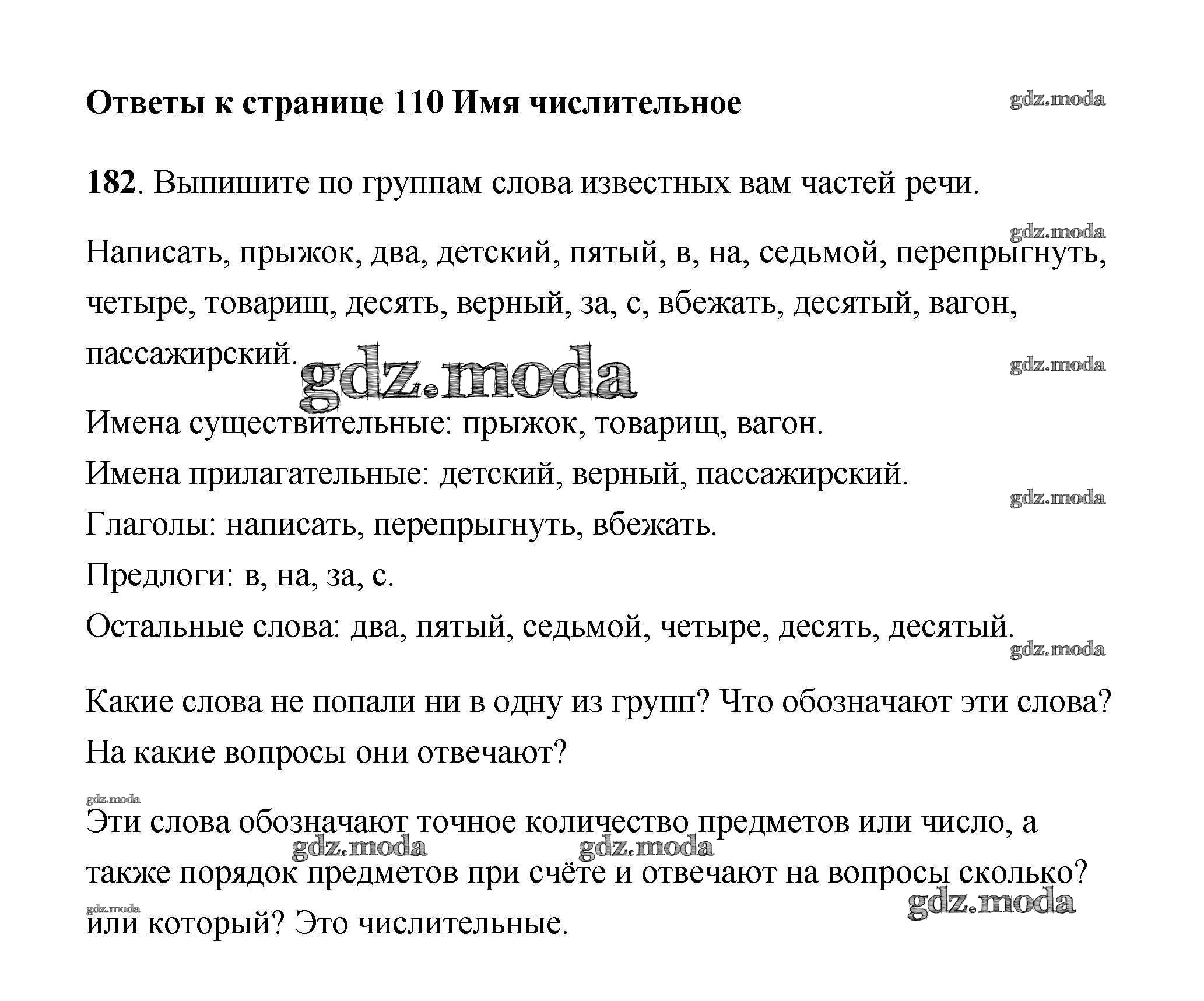 ОТВЕТ на задание № 182 Учебник по Русскому языку 4 класс Климанова Перспектива