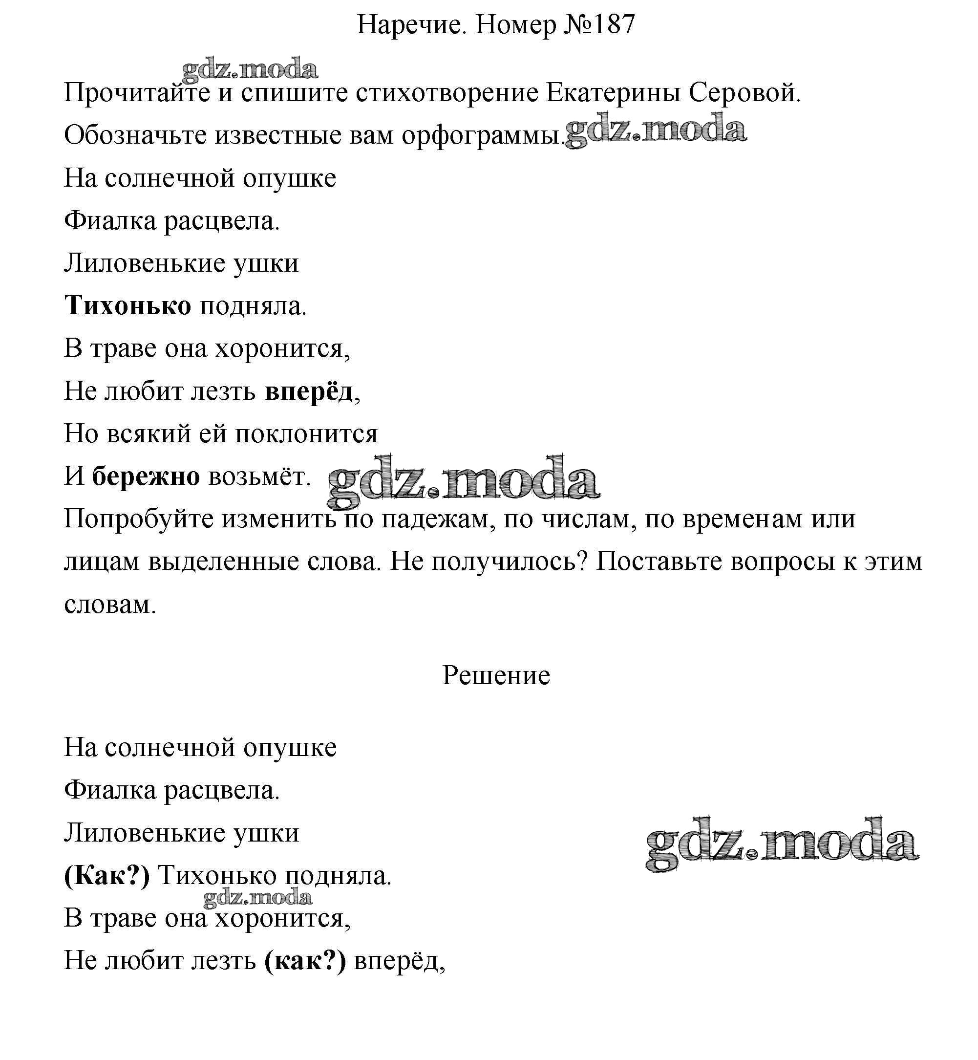 ОТВЕТ на задание № 187 Учебник по Русскому языку 4 класс Климанова Перспектива