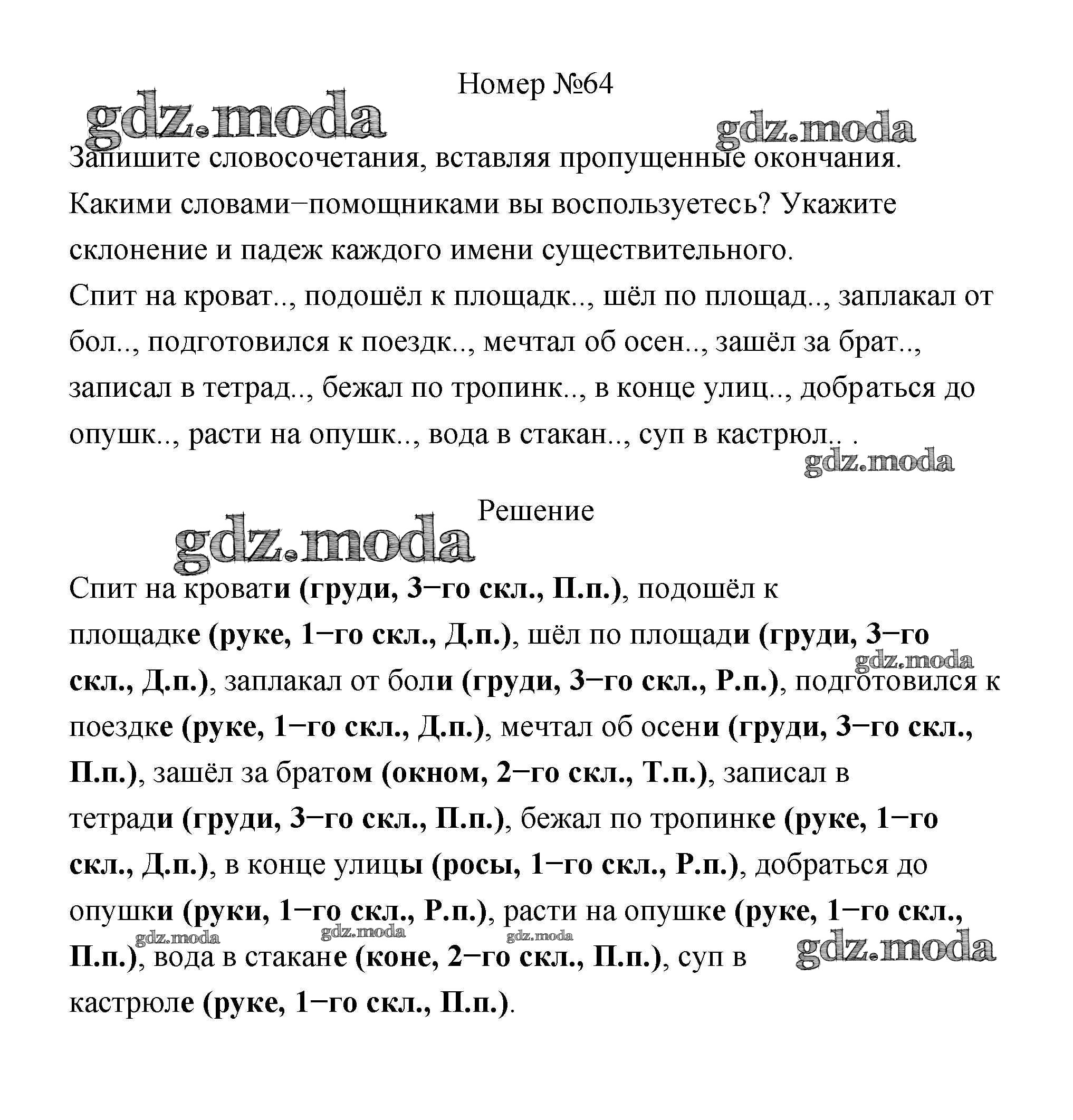 ОТВЕТ на задание № 64 Учебник по Русскому языку 4 класс Климанова Перспектива