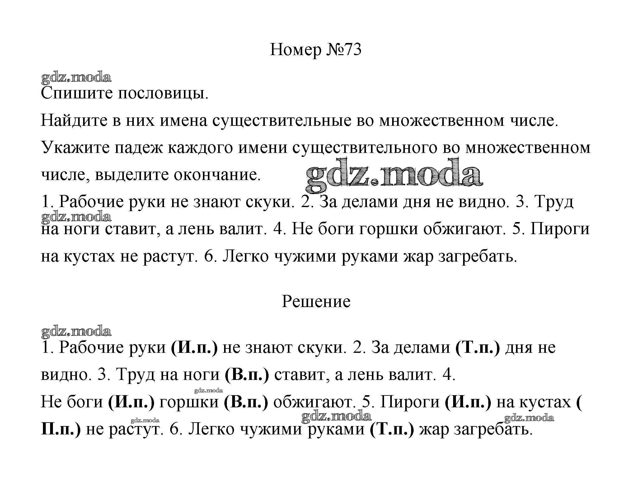 ОТВЕТ на задание № 73 Учебник по Русскому языку 4 класс Климанова Перспектива