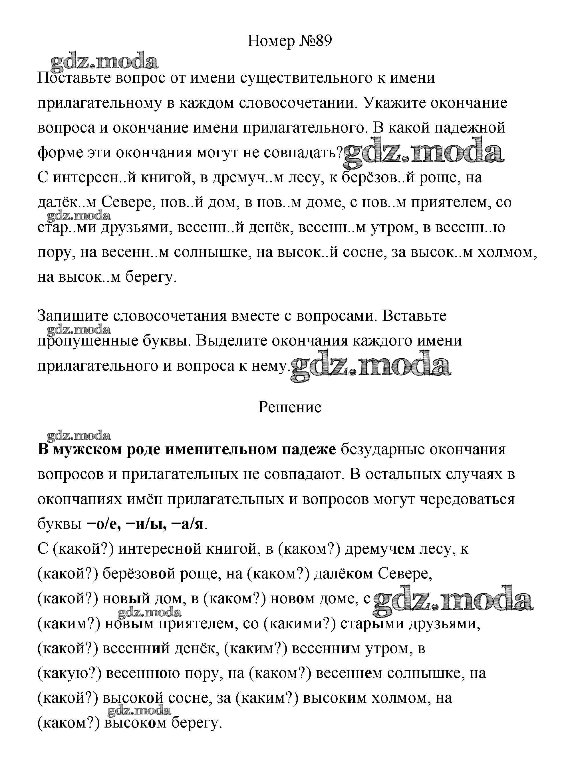ОТВЕТ на задание № 89 Учебник по Русскому языку 4 класс Климанова Перспектива
