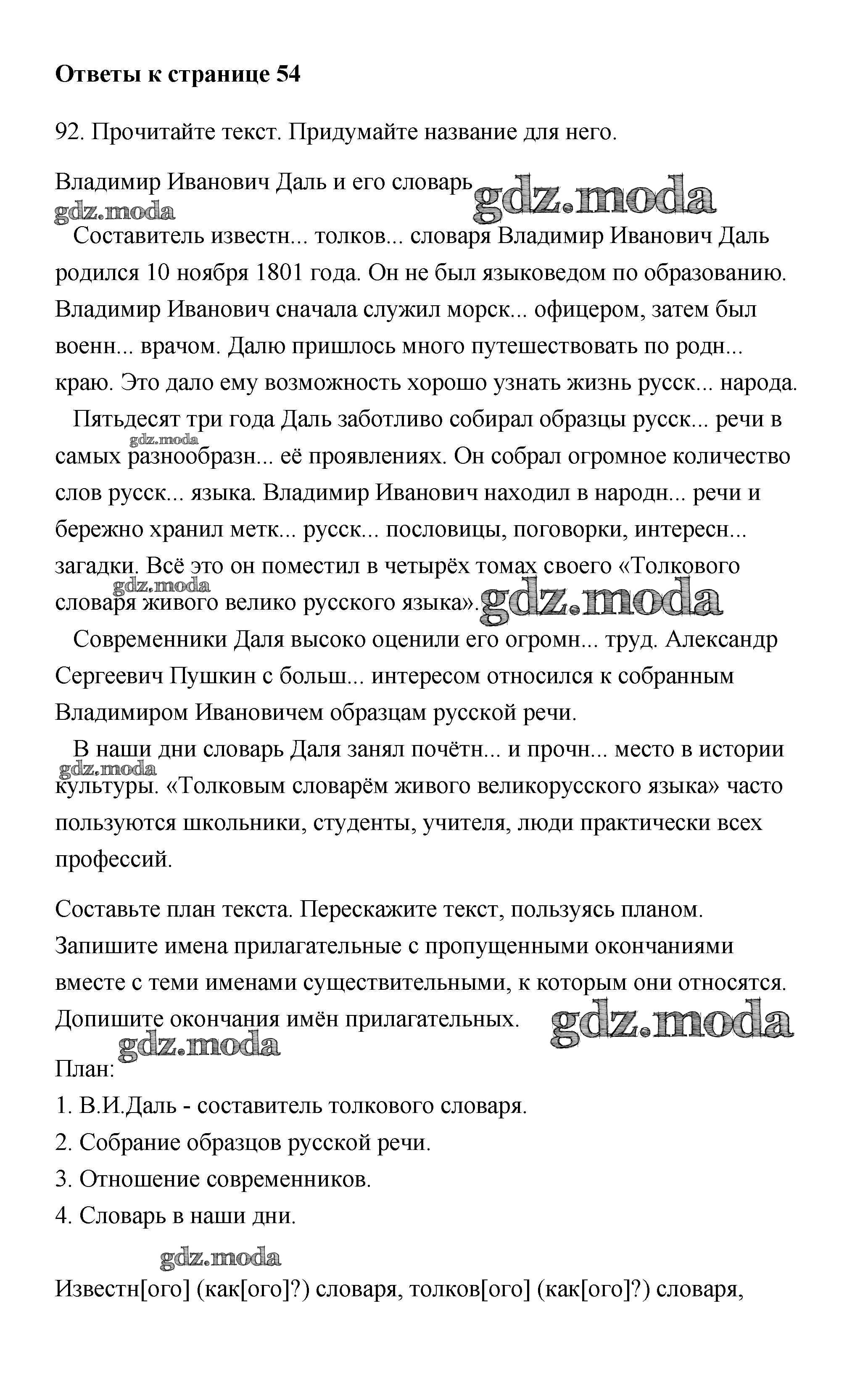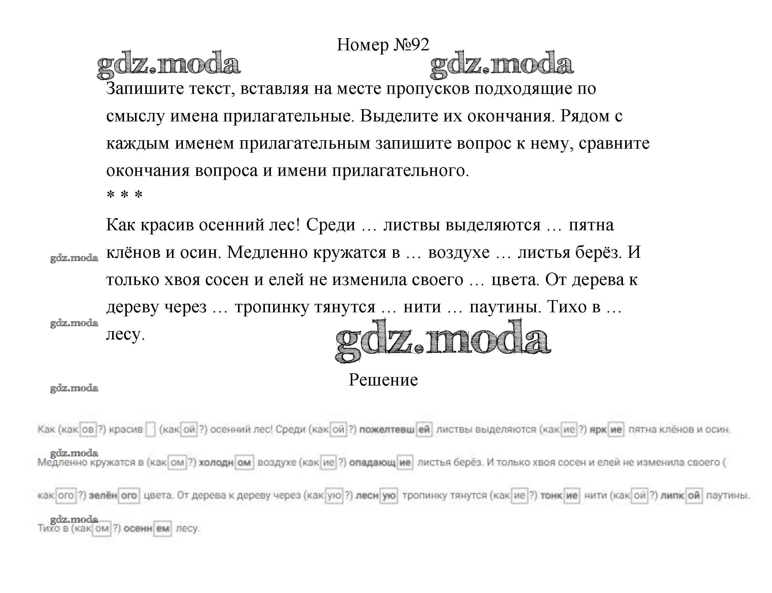ОТВЕТ на задание № 92 Учебник по Русскому языку 4 класс Климанова Перспектива