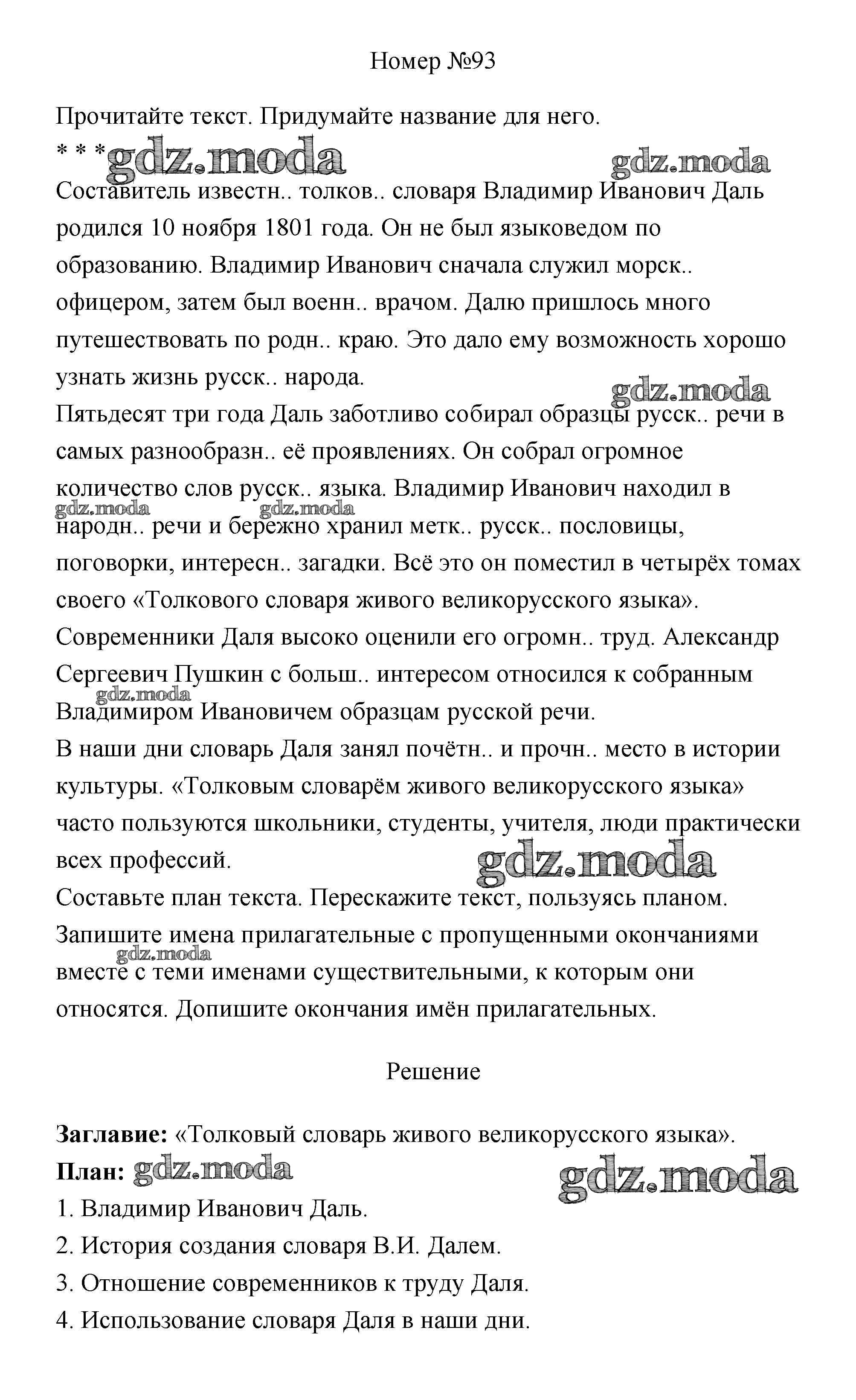 ОТВЕТ на задание № 93 Учебник по Русскому языку 4 класс Климанова Перспектива