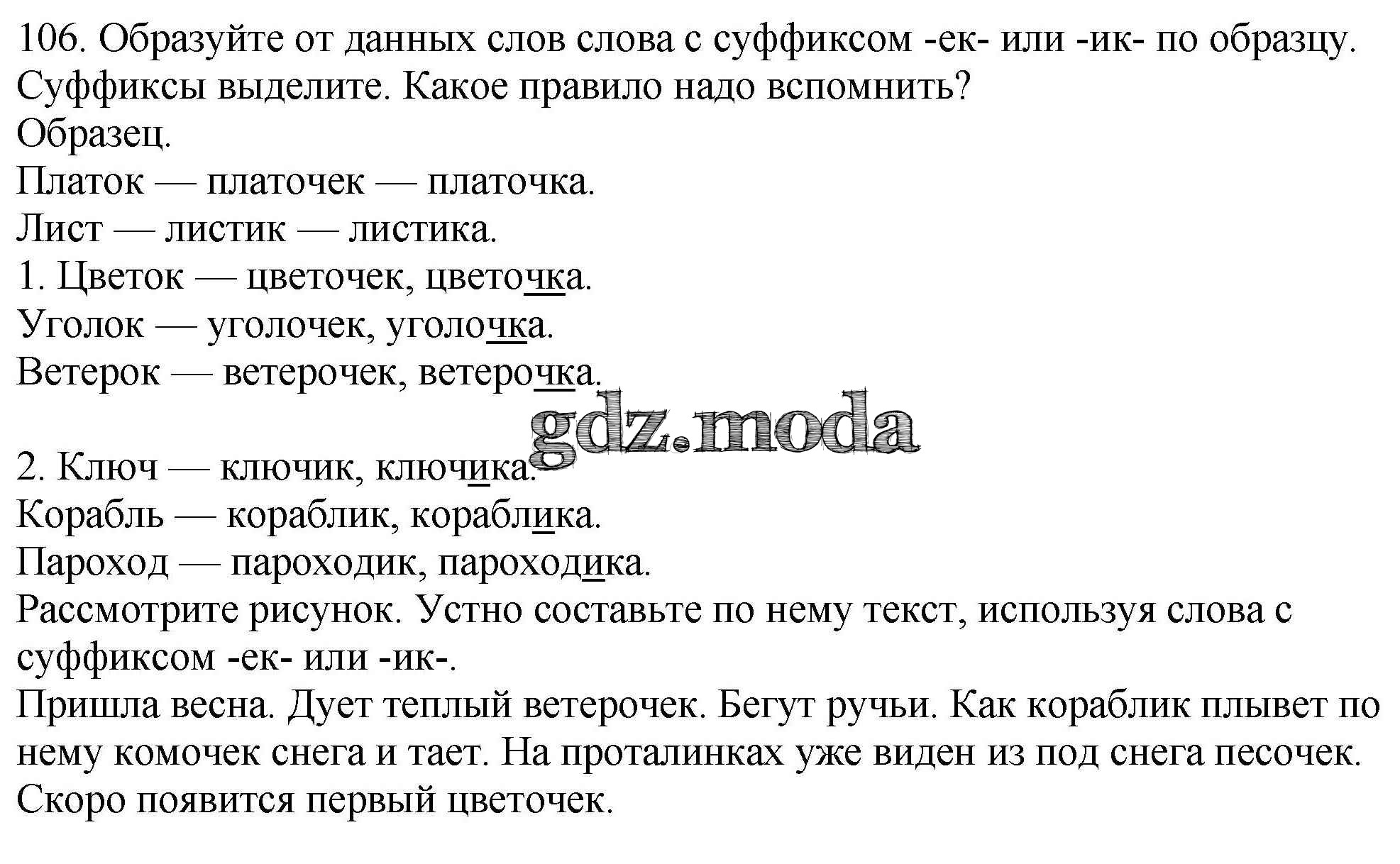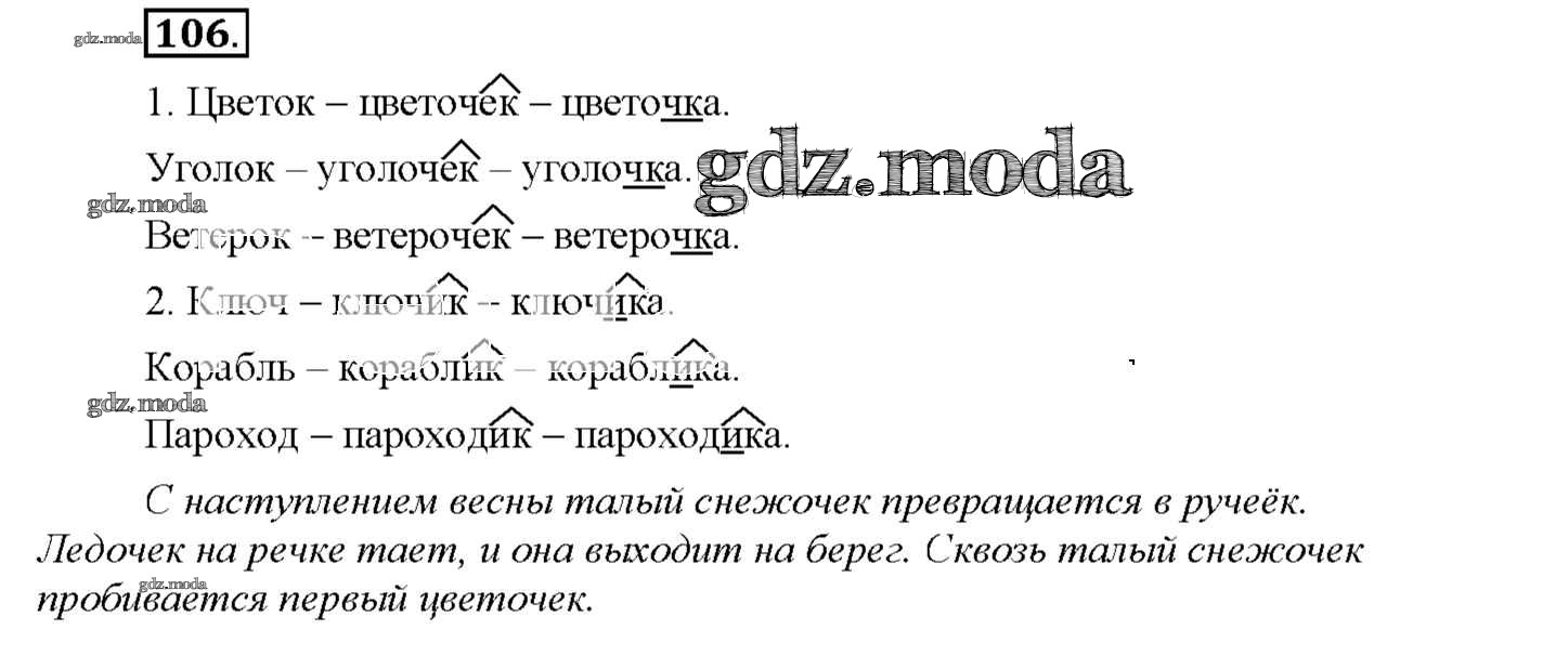 ОТВЕТ на задание № 106 Рабочая тетрадь по Русскому языку 4 класс Климанова Перспектива