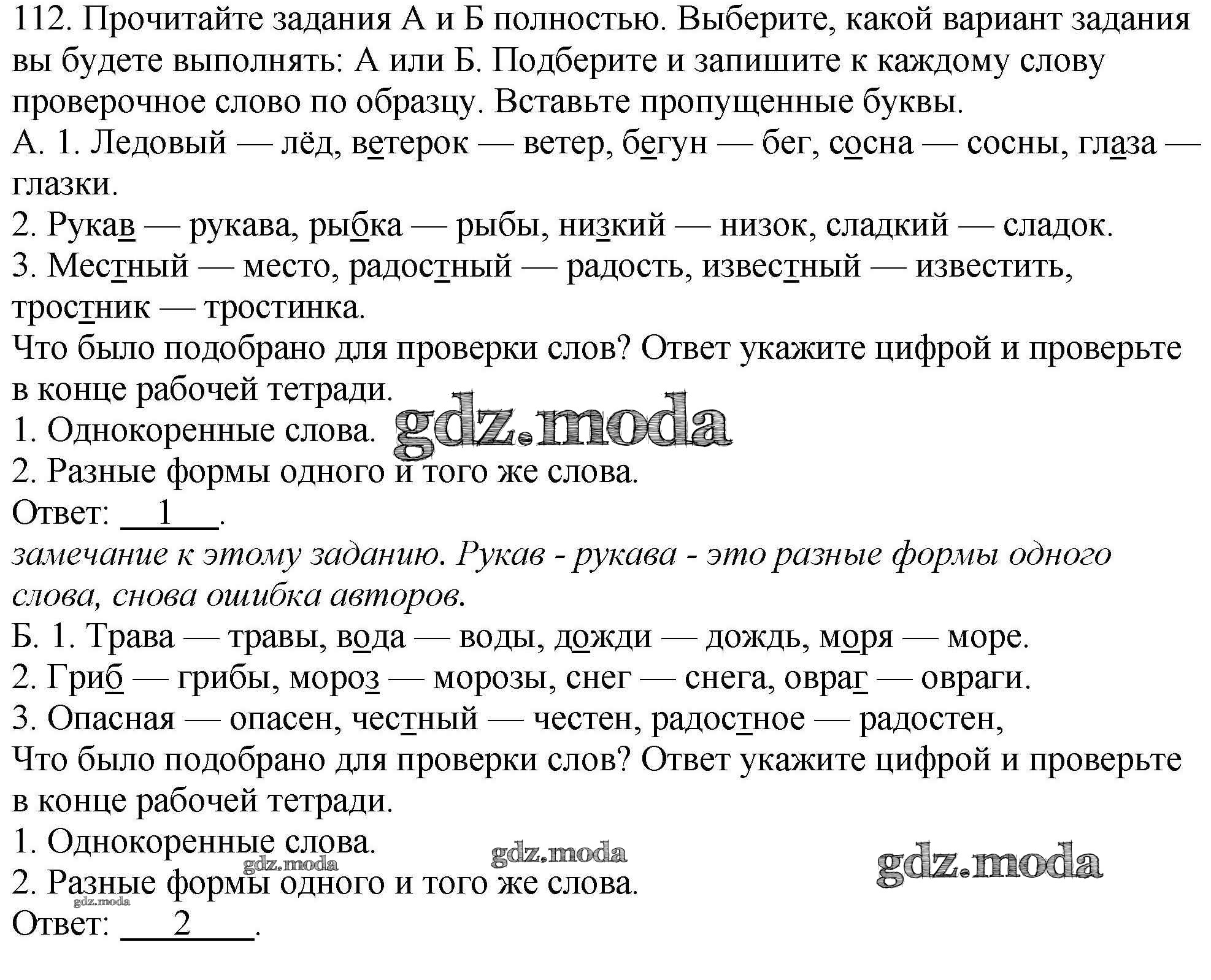ОТВЕТ на задание № 112 Рабочая тетрадь по Русскому языку 4 класс Климанова Перспектива