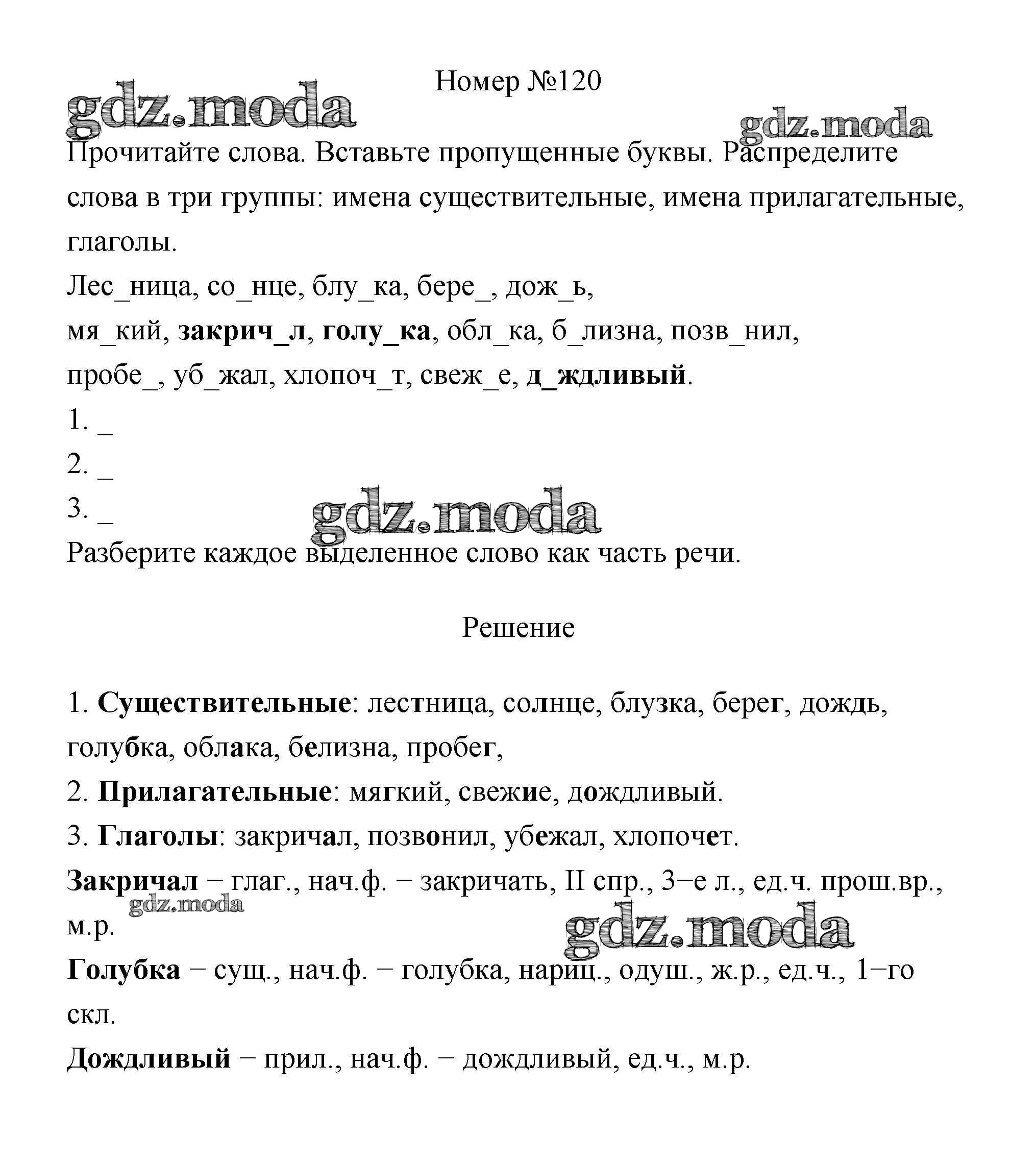 ОТВЕТ на задание № 120 Рабочая тетрадь по Русскому языку 4 класс Климанова Перспектива