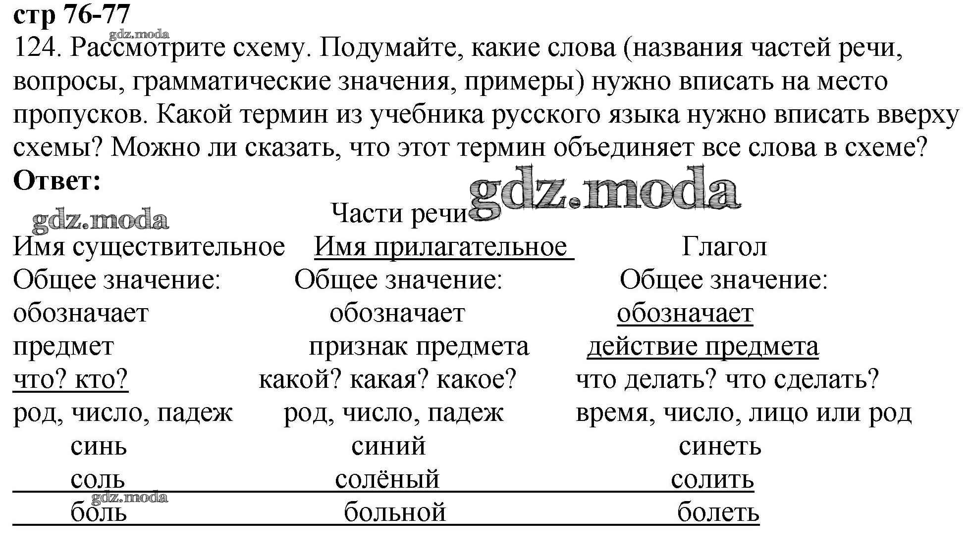 ОТВЕТ на задание № 124 Рабочая тетрадь по Русскому языку 4 класс Климанова Перспектива